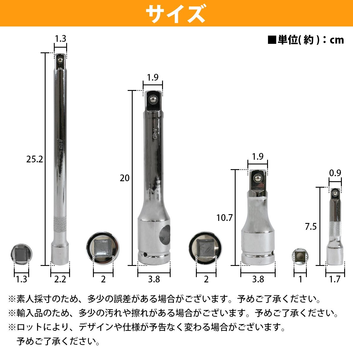 商 品 説 明・自動車整備、オートバイ整備に!エクステンションバーの4本セットです。