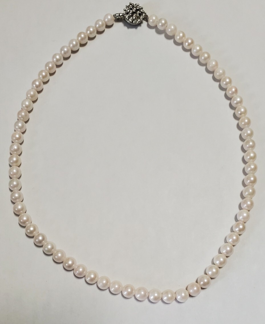 本真珠  ネックレス  レディース アクセサリー  パール 幅5.9mm-6.4mm  重さ24.8g  長さ42.5cm  ホワイト  美品