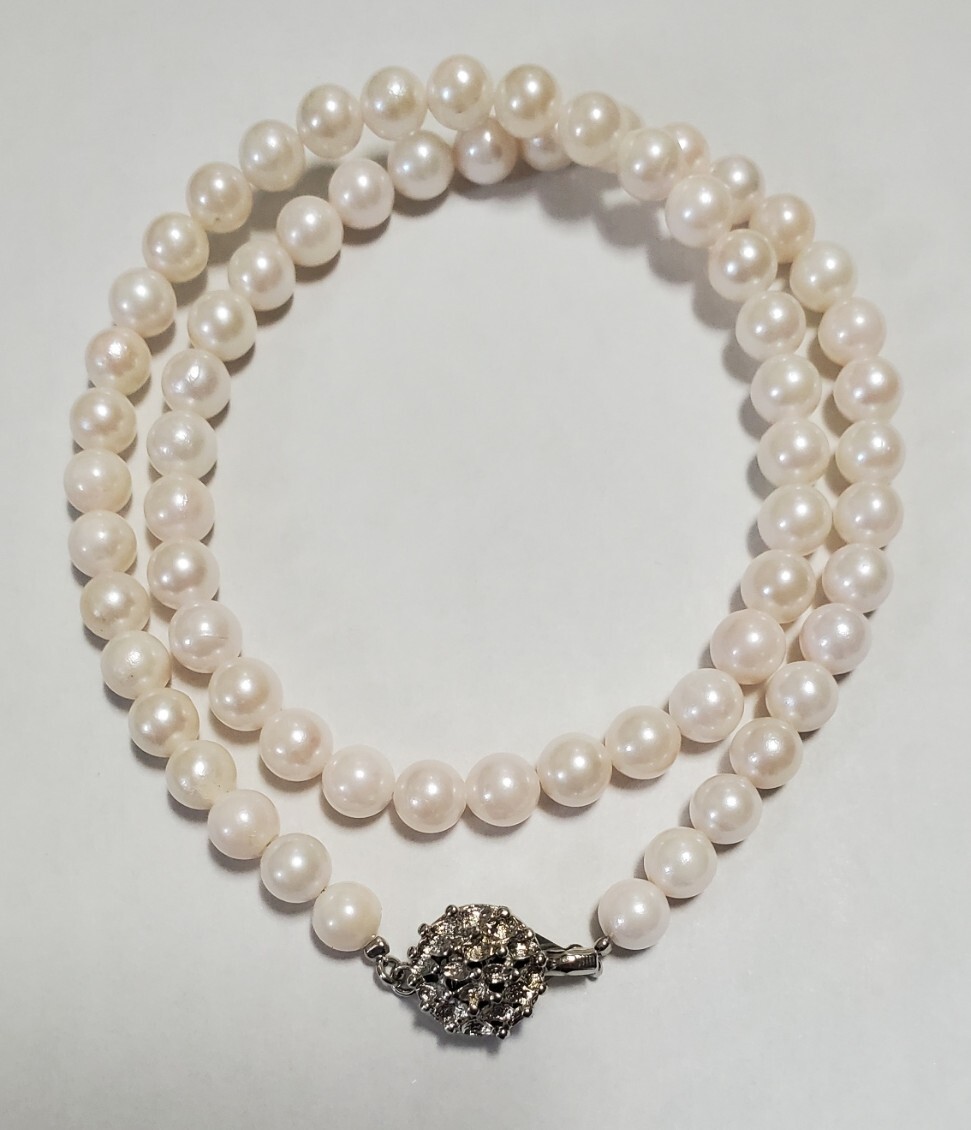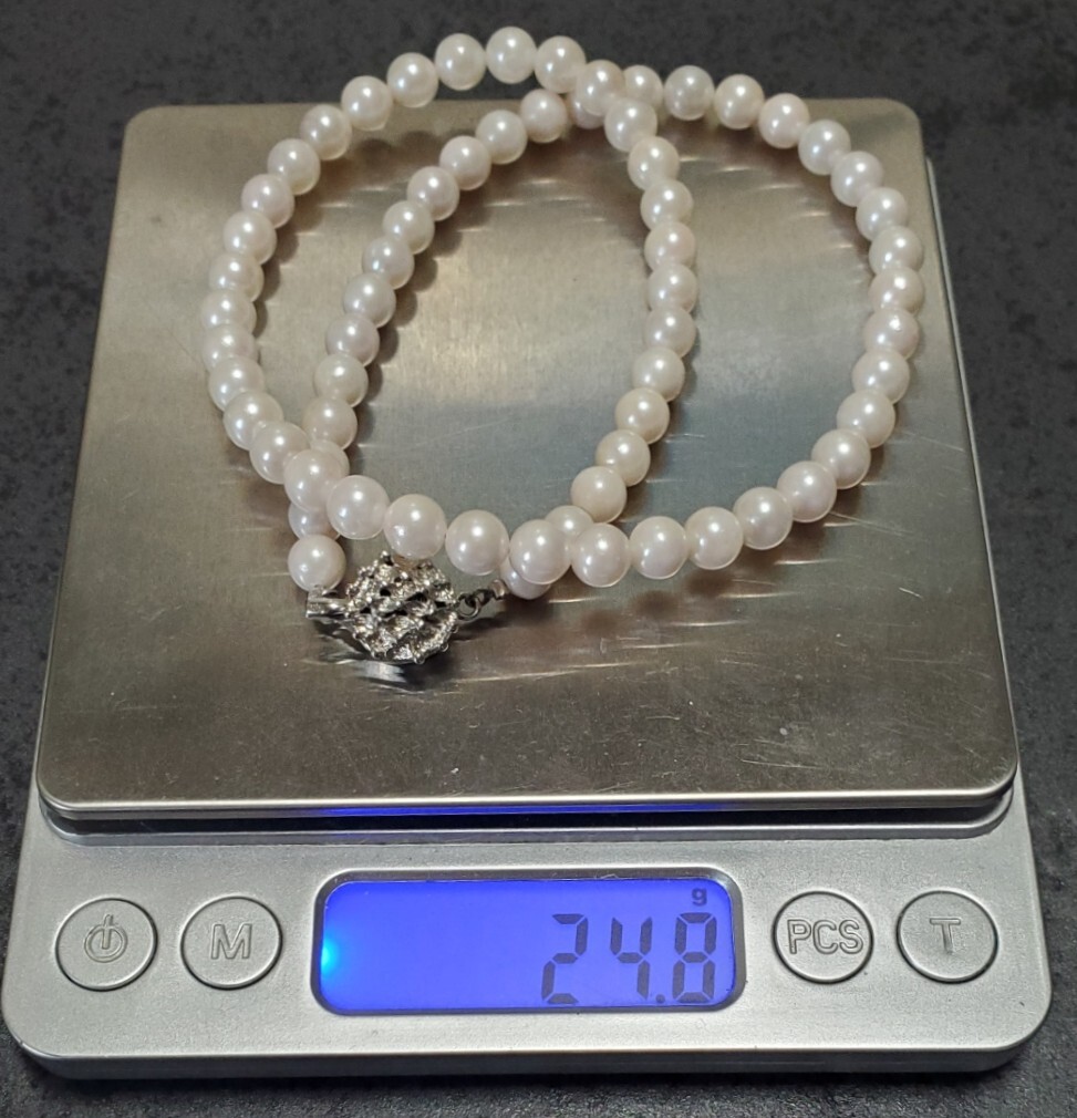 本真珠 ネックレス  レディース アクセサリー  パール 幅5.9mm-6.4mm 重さ24.8g 長さ42.5cm ホワイト 美品