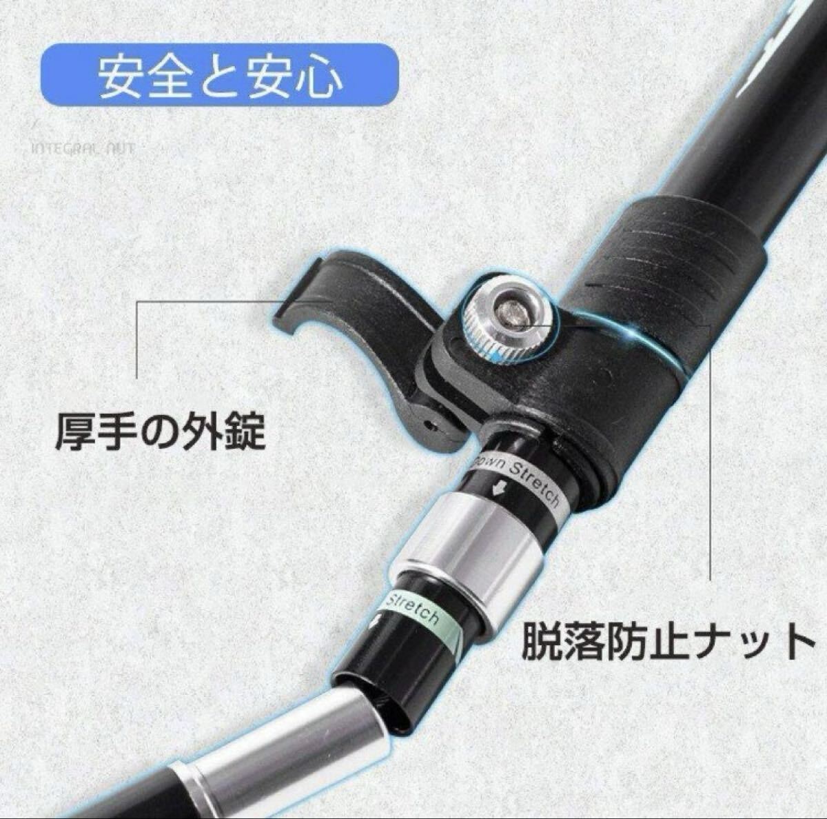 5段伸縮機能を搭載していますので、全長110cm、折りたたみ状態では全長30cmで,コンパクトに持ち運びが便利です。