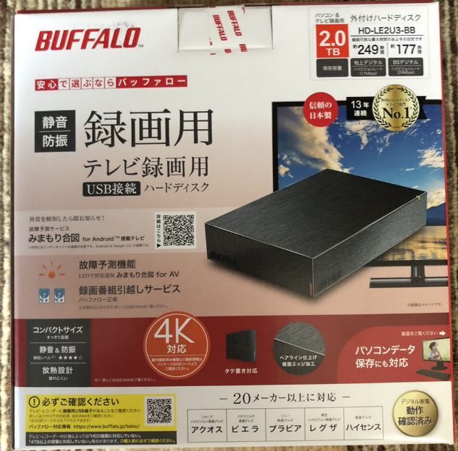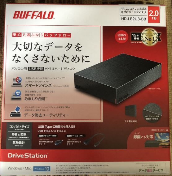 Buffalo バッファロー USB3.2(Gen.1)対応 外付けHDD 2TB ブラック HD-LE2U3-BB です。