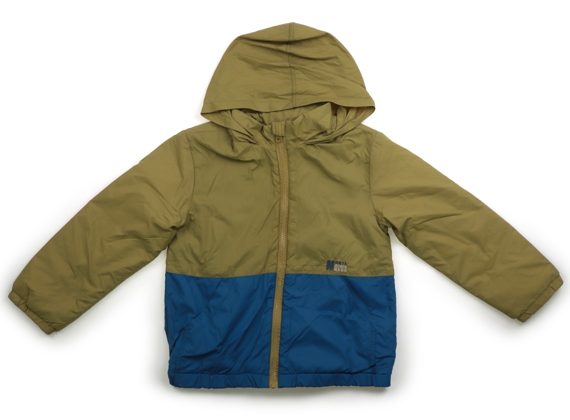 ナイロン素材。中綿入り。裏地はフリース素材。フードは襟の中にしまえます。目立った汚れのない良品です。