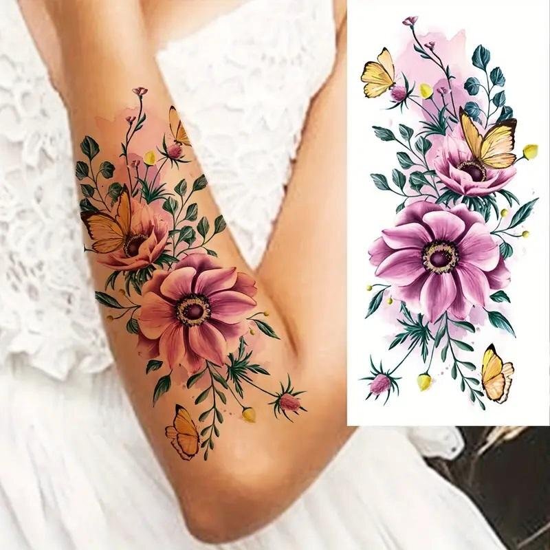 台紙サイズ 約 10cm×21cm 肘から手首ほどのサイズのタトゥーシールです。 ※敏感肌、目の近く、または接着剤にアレルギーがある場合は使用しないでください。 【使用方法】 ●透明フィルムを剥がし、スプレーまたは濡れタオルでステッカーをしっかりと濡らして下さい。 ●10秒間、肌に密着させ、ステッカーを剥がします。その後約2時間濡らさないで下さい。 ●約、6時間後に発色開始→約24~48時間程度で完全発色します。 ●約1~2週間持続します。 【貼る時のコツ】 シートそのままの大きさだと曲げ辛く密着しにくい為、余白部分を切ってから貼るのがコツです。 ※商品画像の色味は画面でみた場合と実際は多少の色差が生じる場合がございます。 ※海外製品のため入荷時点でしわや折れ目が付いている場合がございますが、ご使用には問題ございませんので予めご了承ください。