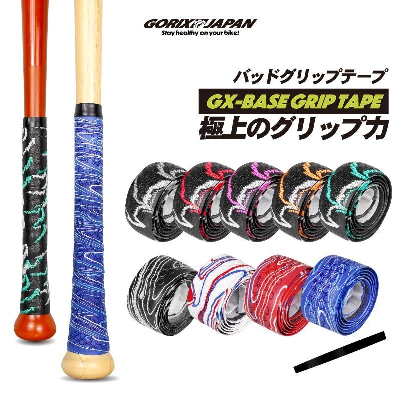 GORIX 野球 バッドグリップテープ GX-BASE 「極上のグリップ力を」 「GORIX」の野球バット用グリップテープは、快適なバッティングをサポートするアイテムです。 表面には滑り止めパターンを採用し、ウェットな状況でも高いグリップ力を発揮。汗や湿気で滑る心配を軽減します。 さらに、クッション性に優れ、打球時の振動を効果的に吸収することで、手や手首への負担を軽減。 長時間の使用でも疲れにくい設計です。素材にはシリコンとPUレザーを使用し、高い耐久性と強度を実現。 木製バッドから金属バッドまで、素手での素振りや練習に最適なバッド用グリップテープです。 特徴 ●優れたグリップ力/ウェットでも滑らない ●表面には滑り止めパターン ●クッション性/振動の吸収で手の負担を軽減する ●シリコン×PUレザー高い強度耐久性 【グリップ力】 ウェットな状況でも高いグリップ力を発揮。 滑り止め効果も抜群で、手が汗ばんでもしっかりとした安定感を提供。 まさに滑り止めテープ! 【滑り止めパターン】 表面には滑り止め加工のパターン模様が施してありさらに高いグリップ力を。 【クッション性】 打球時に発生する振動を効果的に吸収し、手や手首への衝撃を大幅に軽減します。 特に芯を外した際の不快な振動も抑えるため、練習や試合での疲労を軽減する効果が期待できます。 また感触は良い握り心地と手に吸い付くような触り心地です。 【シリコン×PUレザー高い強度耐久性】 伸縮性高いPUレザーに強度は高く耐久性に優れているシリコンを配合しタフで扱いやすいテープに。 シリコンを配合する事で付着した汚れを落としやすい。 【商品内容】野球用バットグリップテープ 【材質】PUレザー×シリコン 【厚さ】タイプ:YOROKE(2.0mm)/タイプ:GX-Marble(2.2mm) 【長さ】1mm 【製品による注意点】製品によって模様は多少異なる場合がございます。 素材は同じですが2タイプの表面の質感が多少異なります 商品は入荷によりキズがある場合があります。 傷や細かい汚れが気になる方や神経質な方は入札をお控え下さい。 入荷時期により予告無く一部仕様変更する場合が有ります。 カラーはディスプレイ種類環境等により実物と異なって見える場合がございます。 |