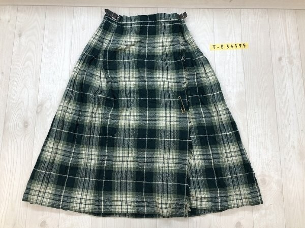 レディース チェック柄 ベルト付き ロング 巻きスカート 58.5cm 緑カーキオフホワイト です。
