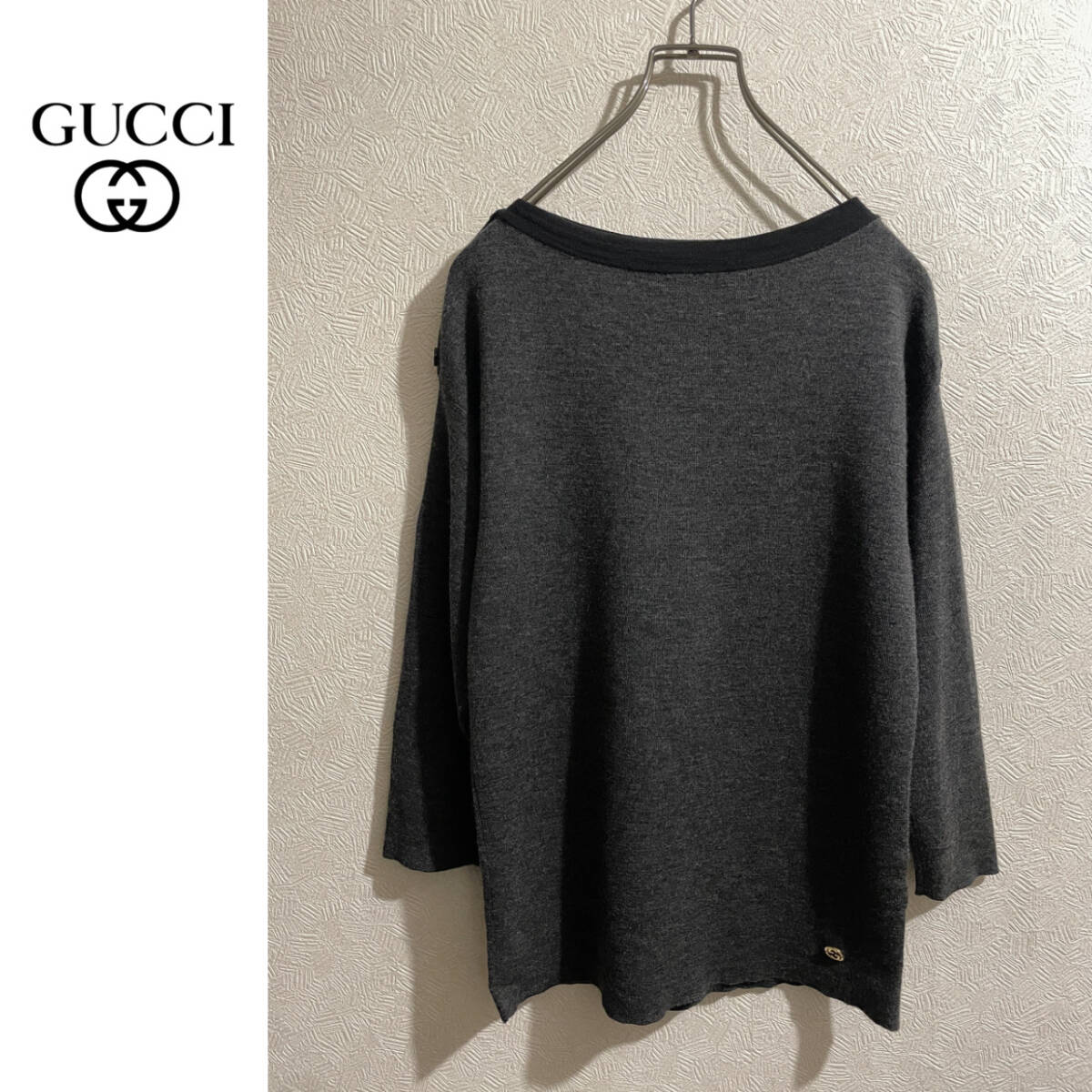 ◯ イタリア製 GUCCI ショルダー ボタン マリン ニット / グッチ ボートネック セーター インターロック G グレー XS Ladies #Sirchive