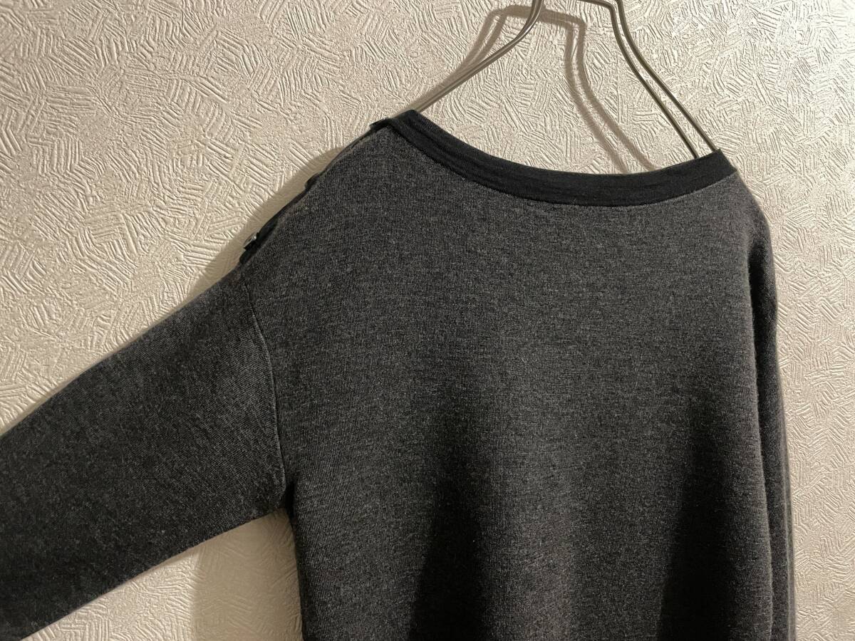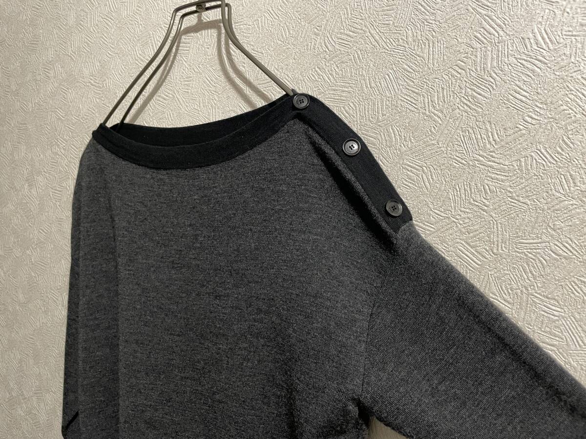 滑らかなウールニットボディに、マリンルックなショルダーボタンが映えるクールなデザイン、