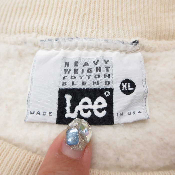 【商品名】 L★古着 リー Lee 長袖 スウェット メンズ 90年代 90s NORTHPORT 刺繍 クルーネック USA製 ベージュ