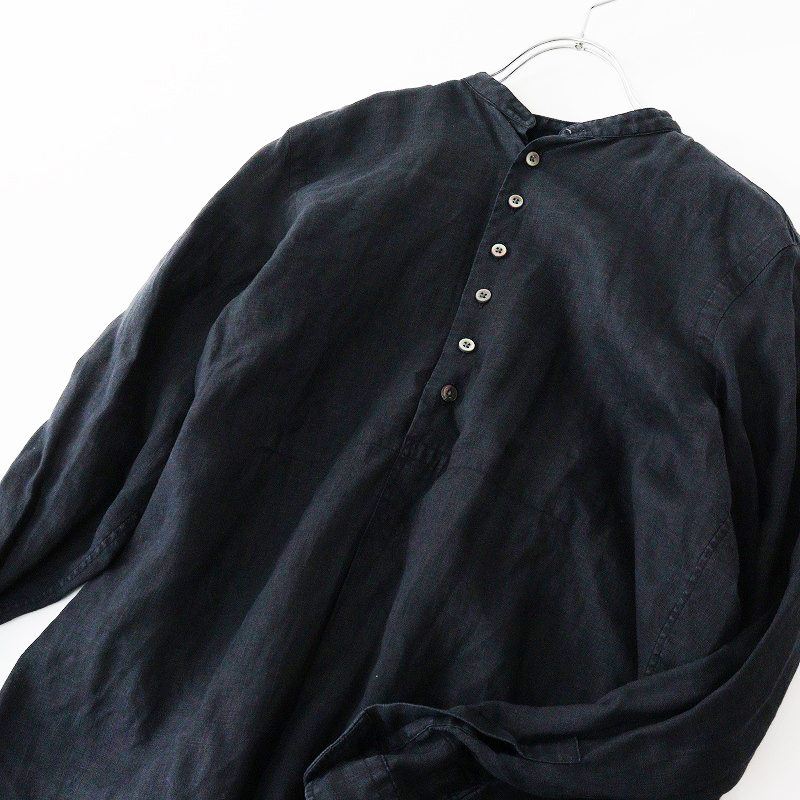 スティアンコル SOUTIENCOL CANCLINI リネンバンドカラープルオーバーシャツ 00\ブラック ブラウス 長袖 トップス【2400014617337】