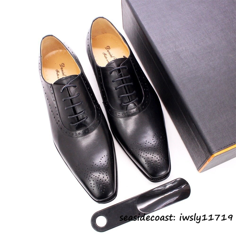 定価10万◆最高級 本革 ビジネスシューズ 牛革 レザーシューズ 職人手作り 彫り 新品 紳士靴 革靴 イギリス風 フォーマル ブラック 27.0cm