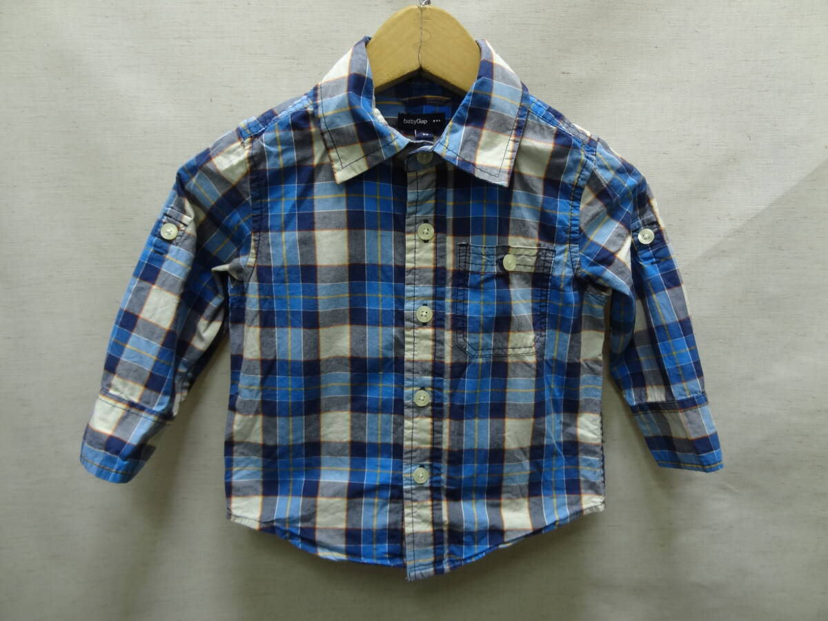 全国送料無料 ベビーギャップ baby Gap 子供服キッズベビー男の子 袖巻き上げ機能付き 長袖 ブロードチェックシャツ 80