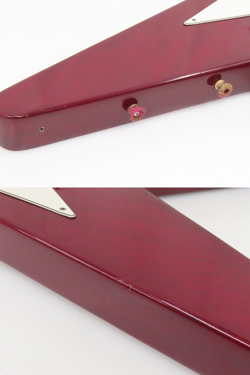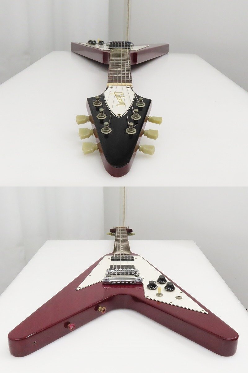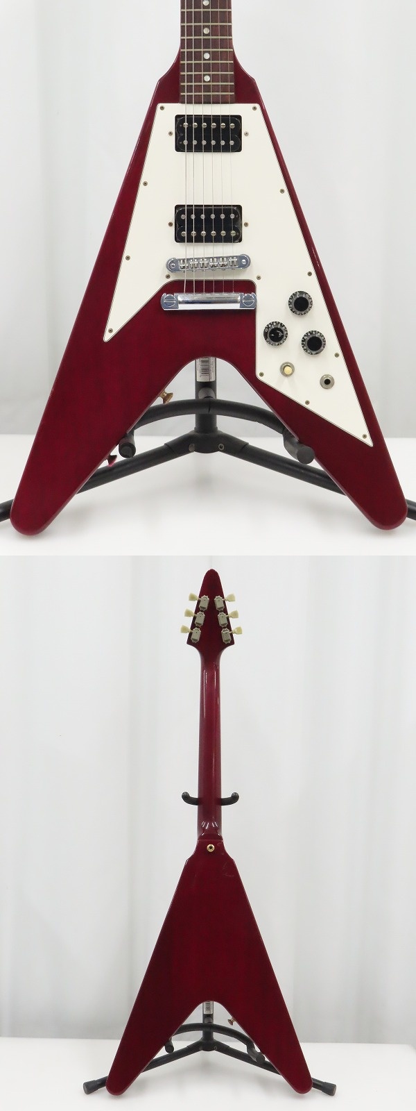 ■メーカー : Gibson ■型番 : FLYING V ■本体重量 : 3.08kg 主観になりますが、ネック/順反り フレット残/分位かと思われます。 ※弊社実測の為、多少の誤差はご了承下さい。 【商品の状態 当店での確認内容】 VOLUMEツマミにガリがあり、ジャックに接触不良がございます。 TONEツマミは機能していません。 ※上記により【難あり商品】としての出品となります。 ※商品の状態をご理解の上ご入札ください。 「商品の状態」に関しましては当方主観の目安となります。外観などは中古品で個人差もありますので詳細は画像にてご判断ください。 画像にて不明な点はご質問下さい。 出品商品は画像の物ですべてになり画像に写っているもの以外は付属いたしません。 ※撮影用の備品(スタンド等)は付属いたしません。 ※弦は消耗品となりますので、おまけとしてお考えください。 ※トラスロッドが付いてる製品に関しましては現状維持のため未確認となります。 ※注意※ ヤフオクのシステム上、送料表記が送料未定となっておりますが、送料に関しては全て有償となりますので下記を参照下さい。 【送料 全国一律 6,820 円 沖縄、離島は別途お見積り】 ※送料がお得になるサービスです(下取りシステムのご案内です) 当ストアでは商品を安全にお届け出来るよう提携運送会社と協議の上、発泡緩衝材や強度段ボールの使用等 運送会社が指定する梱包方法や資材を採用しております。 より安全にお届け出来るよう商品仕様により梱包サイズが大きくなる場合や個口数が増える事がございます。 【当ストアオークションルールを入札前に必ずご確認ください。】 【落札後の取引手順】 ・落札後は取引ナビにて、必要事項をご入力後、送信ください。 取引終了後48時間(土、日は除く)以内に入力をお願い致します。 ※ご連絡が頂けない場合は落札者様都合でのキャンセルとさせていただきます。 ・落札代金(商品代金+消費税+送料)の入金をお願い致します。 ※大型商品の場合は送料確定後の決済となる為取引ナビを入力頂き、当ストアより送料のご案内が来るまでお待ちください。(土曜、日曜、祝日の場合は翌営業日より順次ご案内いたします) ・お支払い方法は※クレジットカード/※PayPay残高/※PayPayクレジット/PayPay銀行/ゆうちょ銀行のみです。 ※商品代金引換(代引き)のお取り扱いはしておりません。 ※領収証の発行が必要な方はご連絡ください。 ※銀行振込の際の振込手数料はご負担願います。 ・入金確認後に出荷手配を致します。 (原則入金確認後3営業日以内に発送いたしますが、大型や重量のある製品はお時間をいただく場合もございます。) ・発送は当店指定の運送会社の元払いのみでの発送となります。 ※他の運送会社、送料代引き等は致しかねます。 ※落札者様ご自身での運送会社の手配いただく事も可能ですが荷物事故の責任の所在の問題上、梱包は致しかねます。 ※店頭にお越し頂き手渡しも可能(福岡市早良区)です。ご希望の方はご落札後にご連絡下さい。 ・大型/重量物商品の送料につきましては商品の特性上、荷降ろし状況等により送料が大きく前後し運送業者に別途見積りが必要な為、早めのお問い合わせにてお見積り上、入札をお願い致します。 【初期不良の保証について】 ・商品到着後の初期動作不良、また配送中の事故による破損、不具合が有る場合は、商品発送後10日以内に当ストアまでご連絡ください。当ストアでは修理での対応を優先させて頂きますが、修理不可の場合は全額返金させて頂きます。 (商品代金+消費税+送料のお支払い頂いた金額となります) 【初期不良の保証の対象外について】 次の場合は保証の対象外となりますのご留意ください ・ジャンク商品、現状商品、難あり商品での出品商品。 ※難あり商品に関しましては動作確認時に一部動作不良が確認された商品になり、記載している動作確認以外にも、動作不良がある可能性もございます。こちらに関しましても保証対象外となりますことをご理解ください。 ・年代物のオーディオなどで、当店にてわからない範囲で部品が交換されている場合 ・楽器類の特殊機材(マイクロスコープ等)での確認までは行っておりません。気になる方は事前にご質問いただくか、入札をお控えください。 ※初期不良に関しましては【商品の状態】に記載のもの、またそれによって起因する動作不良は対象外です。 ※商品発送後10日を過ぎてのご連絡は対応が出来ませんので、商品が到着しましたらお早めに確認をお願い致します。 【メーカー保証の加入・継承】 ・未使用品、展示品やメーカー保証期間が残っている商品に関しまして、メーカー保証の加入、継承が必要な方は、落札後取引ナビ内にて当ストアにお知らせください。商品発送までにご連絡いただけない場合、メーカー保証の手続きを承れない場合があります。 【評価について】 ・評価不要の場合、必ず取引ナビの「要望欄」にてお知らせください。それ以外でご連絡をいただいた場合