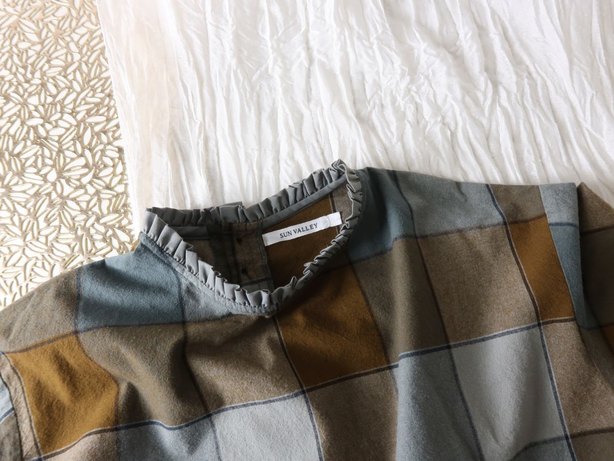 サンバレー SUN VALLEY☆洗える 襟フリル チェックブラウス Mサイズ☆A-O 5394