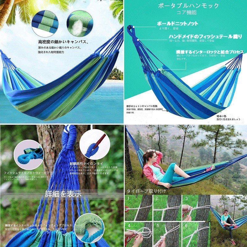 | 1人用 カラフルハンモック ブルー×グリーン 190×80cm |
