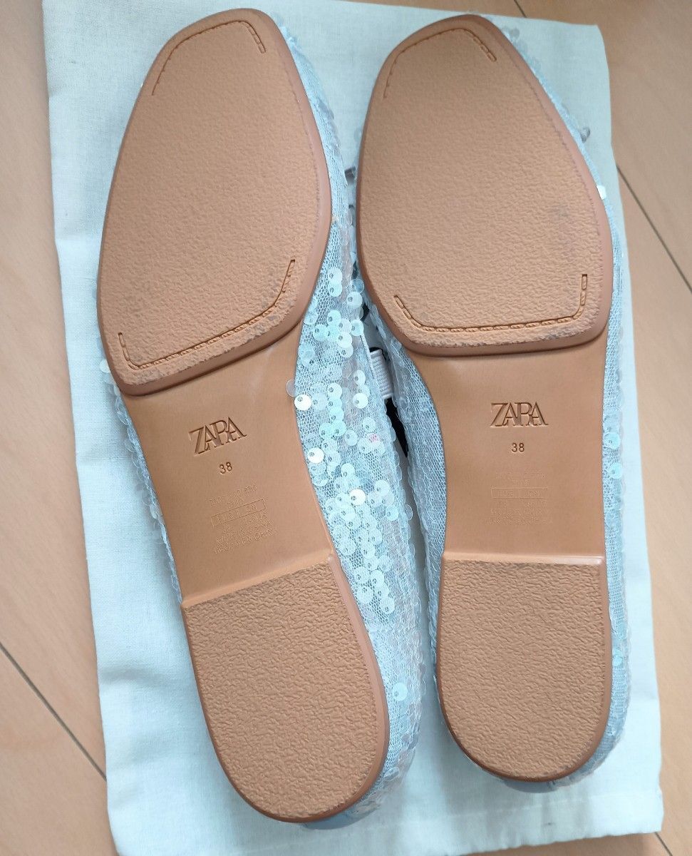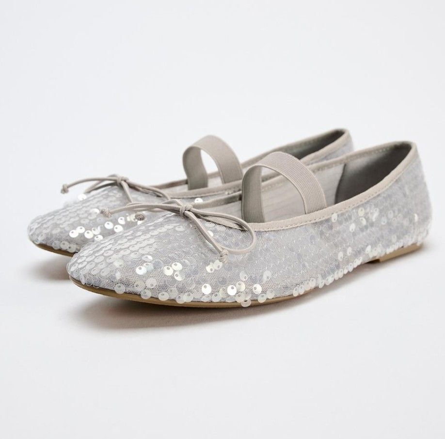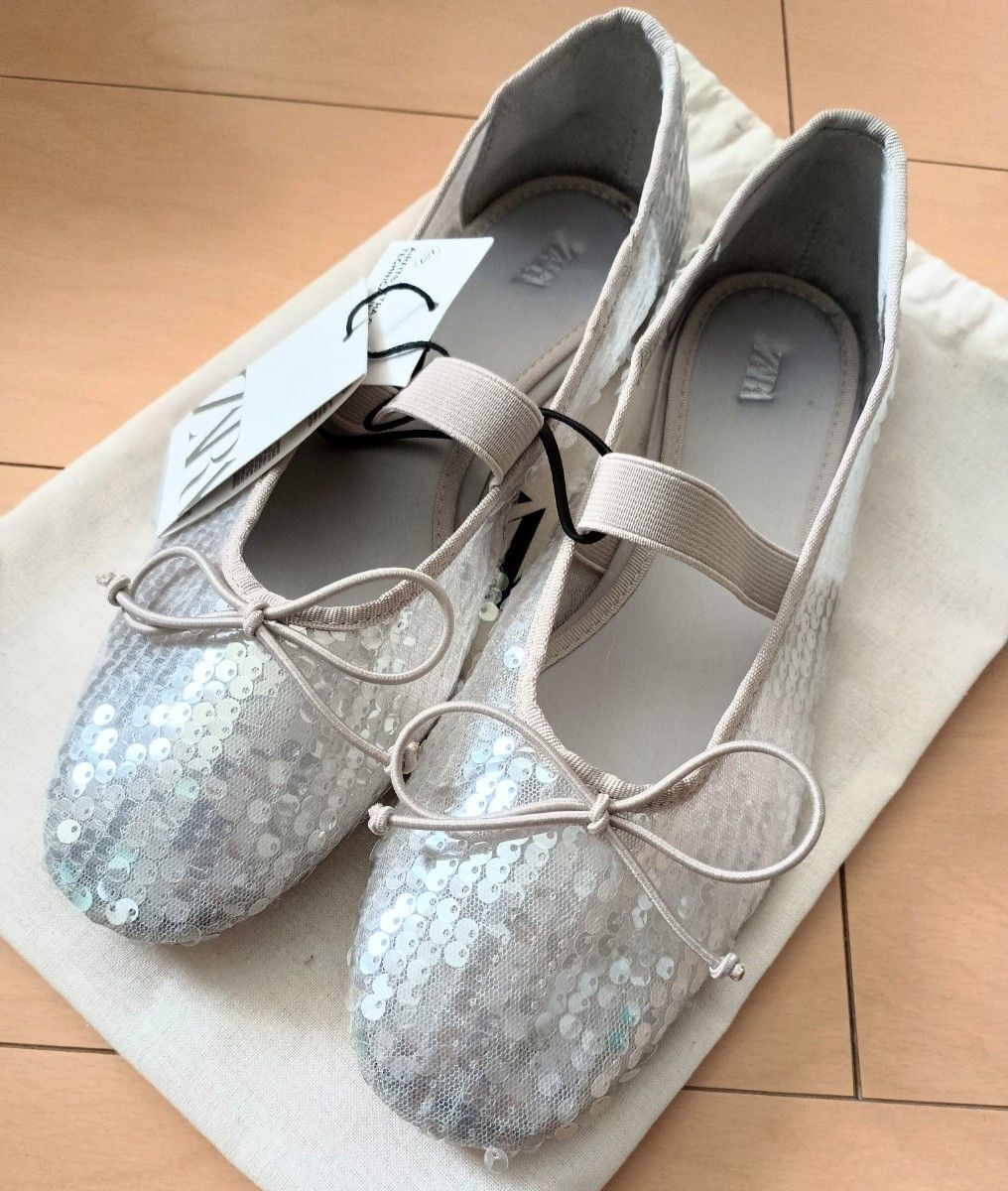 ★新品タグ付き★【ZARA★ザラ】バレエシューズ★スパンコール★シアー★シースルー★フラットシューズ★シルバー★メリージェーン