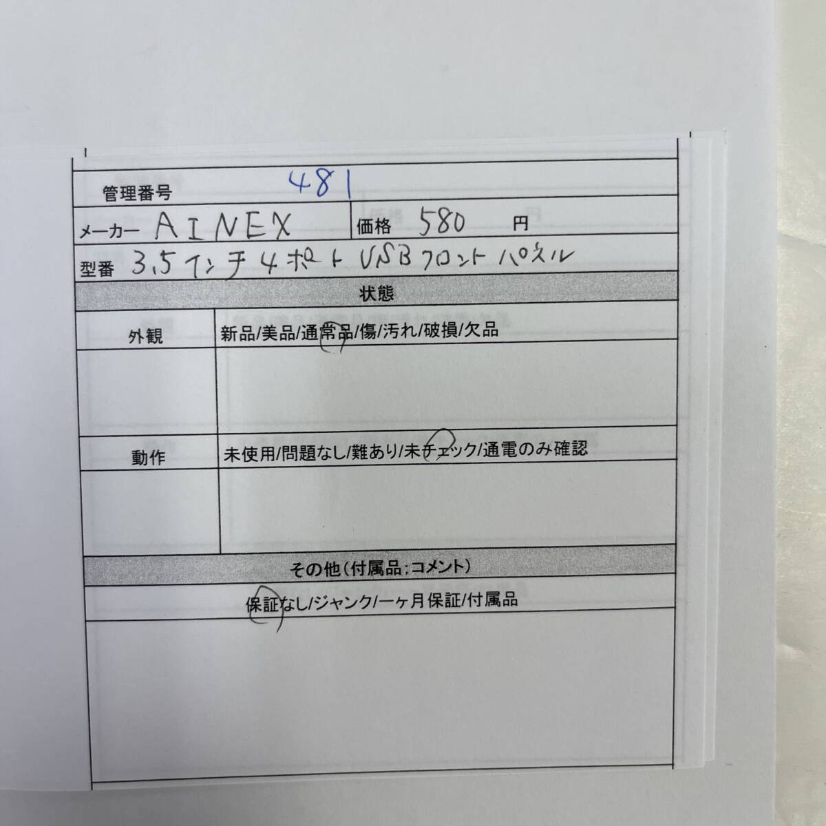 (481) AINEX 3.5インチ4ポートUSBフロントパネル