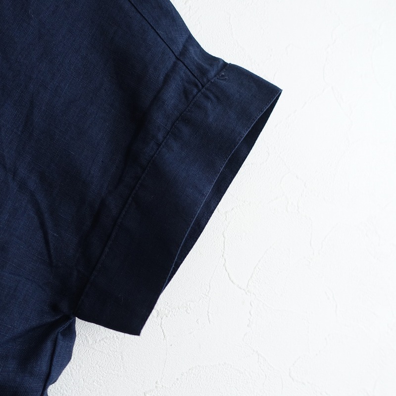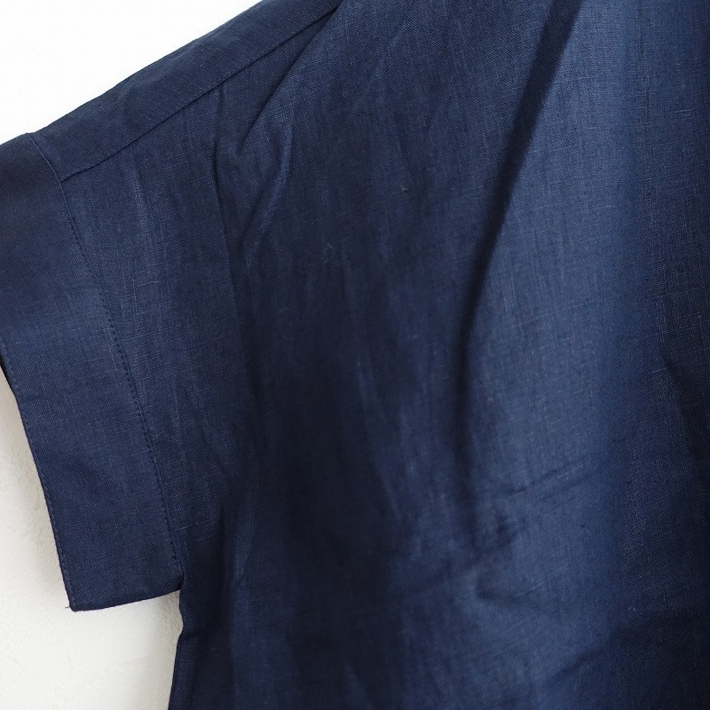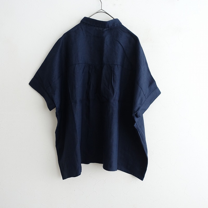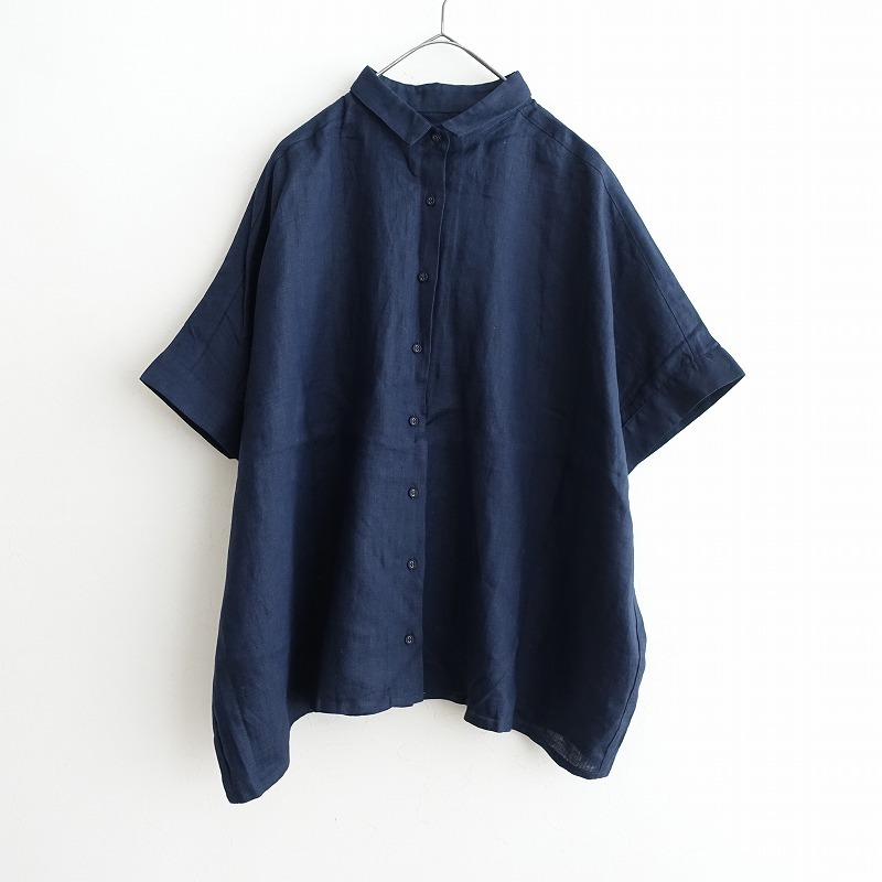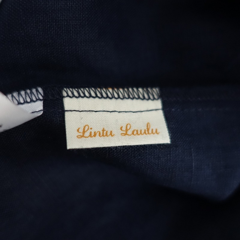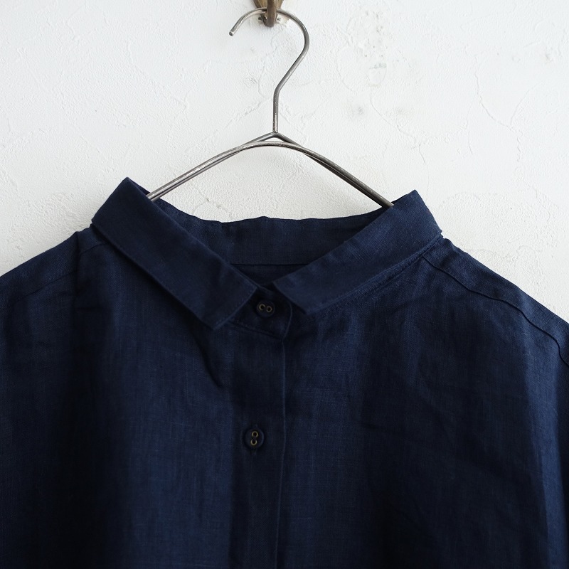 | Lintu Lauluのリネンチビ襟ブラウスです。カラーはネイビーで、リネン地で仕立てられています。ボタン開閉で、ワイドなゆったりとしたシルエットのデザインです。定価(メーカー希望小売価格) 9,900円の商品です。 |