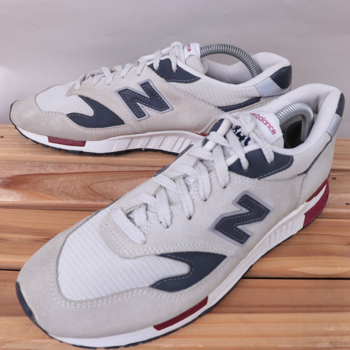 z2208【840】ニューバランス US9 27.0cm/ライトグレー 紺 ワイン newbalance メンズ スニーカー 中古