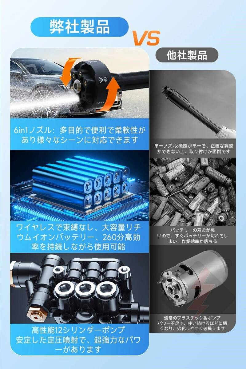 高圧洗浄機 コードレス 充電式 高圧洗浄機 ハンディウォッシャー 吐出圧力 洗車 家庭用 高圧クリーナー 水道不要 電源不要 軽量 バッテリー