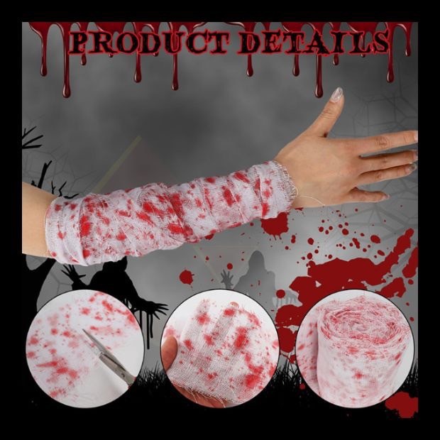 ハロウィンやホラーイベントにぴったりの血痕包帯です。