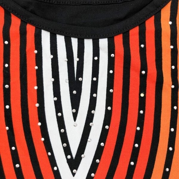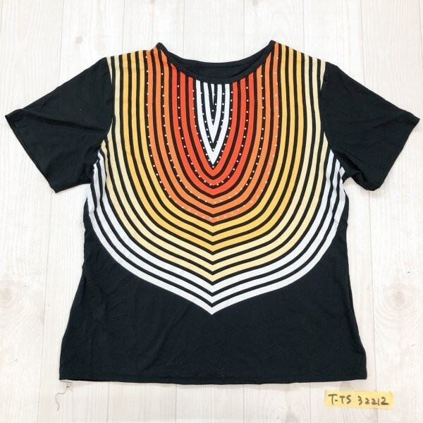 ONORES レディース ライトストーン付き かわりボーダー 半袖Tシャツ M-L 黒 です。