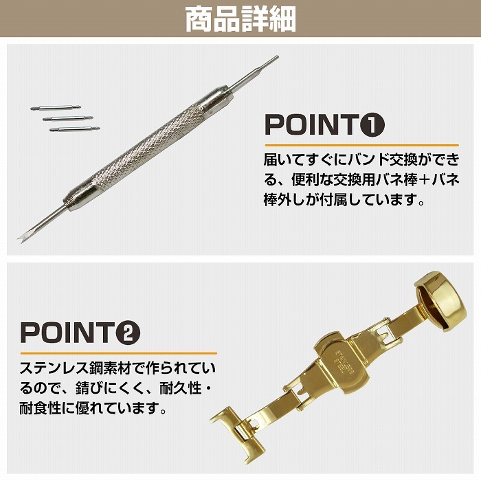 【送料220円】『16mm』プッシュ式 Dバックル ゴールド/金 バネ棒/バネ棒外し 両開き 観音開き 腕時計ベルト 時計バンド 留め具 尾錠 交換用