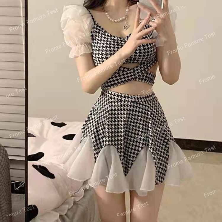 水着 ワンピース水着 フリルスカート ギンガムチェック 上下セット ワンピース 海水着 レディース XL チェック柄