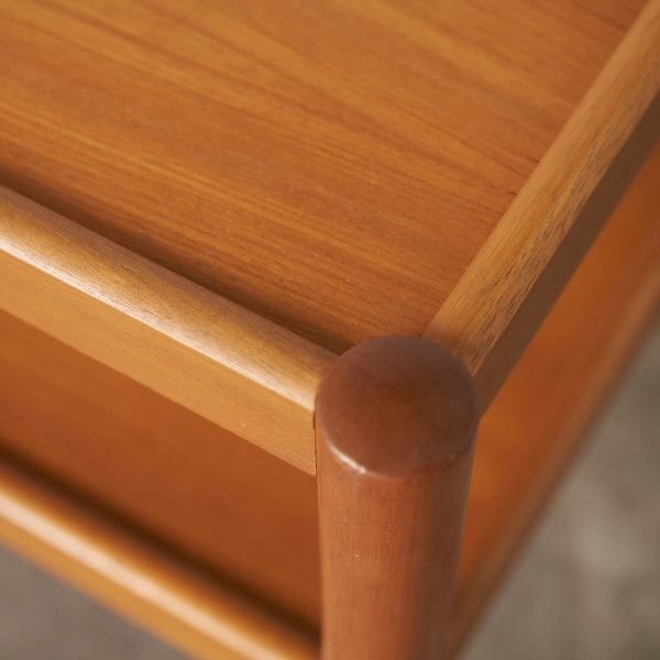 タイ北部からミャンマー産のチーク材は厳しい環境の中、ゆっくりと油分を蓄えながら育ち、鉄の防腐食作用、耐水、防腐、防虫作用が強く、収縮率が少なく木肌も詰まって美しい為、ブラジリアンローズ、ホンジュラスマホガニーと並ぶ世界三大銘木のひとつとして珍重されてきました。この地域のチーク材は「巻き枯らし」と呼ばれる3~5年をかけて立木のまま水抜きをする特殊な伐採手順を踏んでおり非常に素直な加工に適した木質となっています。また、この手順から(ドライチーク)とも呼ばれています。北欧家具や高級家具の素材として使われてきたチーク材ですが、現在は個体数が激減し極めて稀少価値の高い存在となっております。現在流通するチーク材は人工栽培されたインドネシア、ジャワ産の「インドネシアチーク」が主流になっていますが、成長がはやく若木のうちに伐採されるため、木目の美しさや耐久性に劣ります。