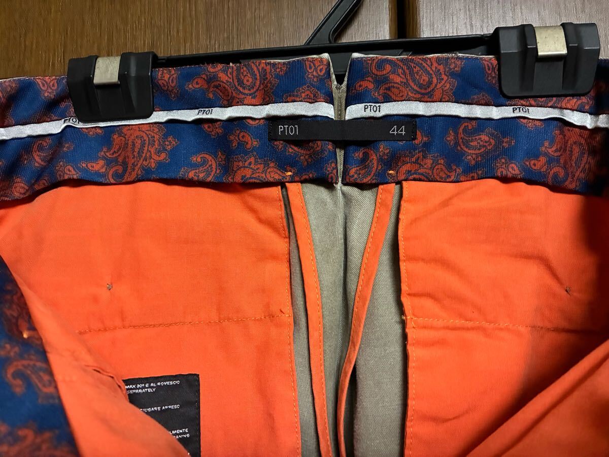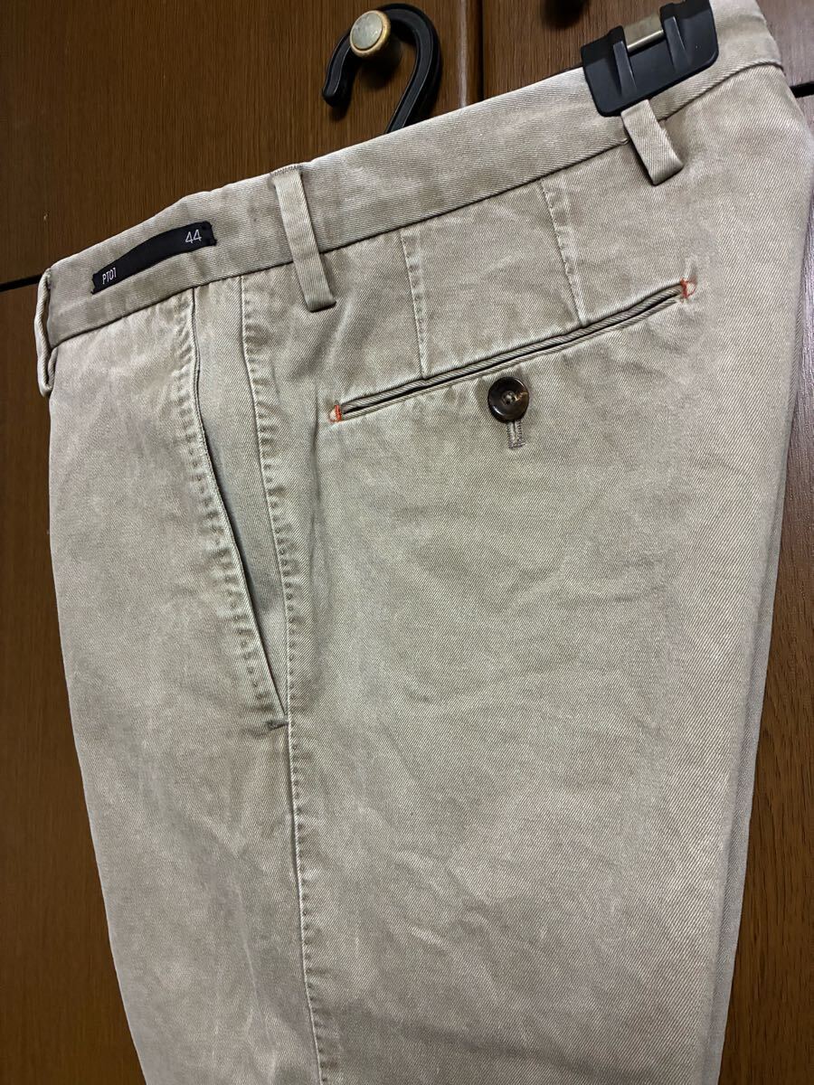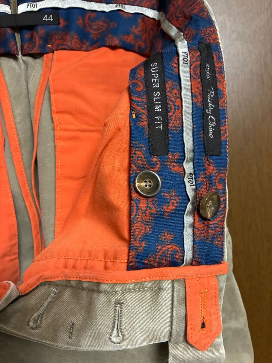 PT01のスーパースリムフィットの少し濃いベージュのパンツです。