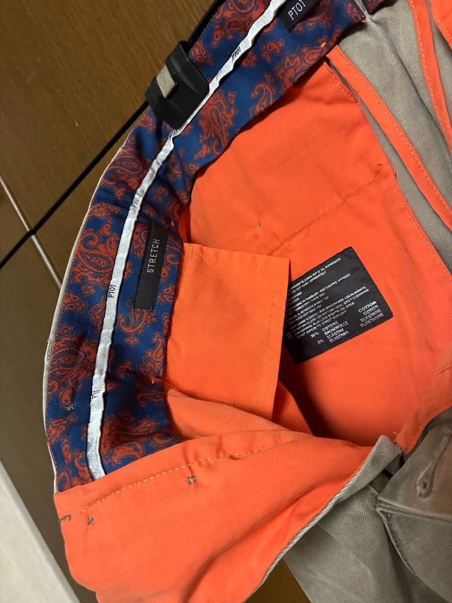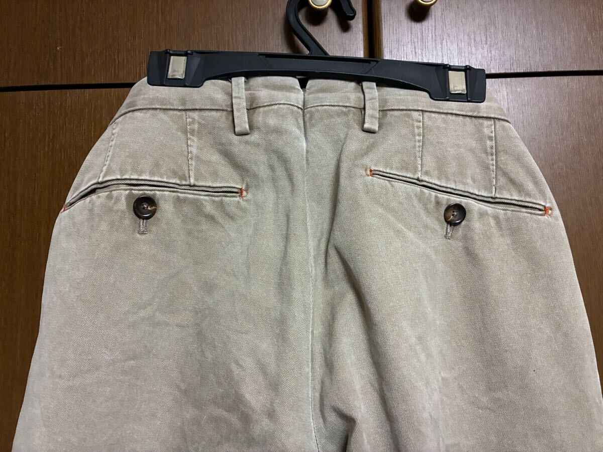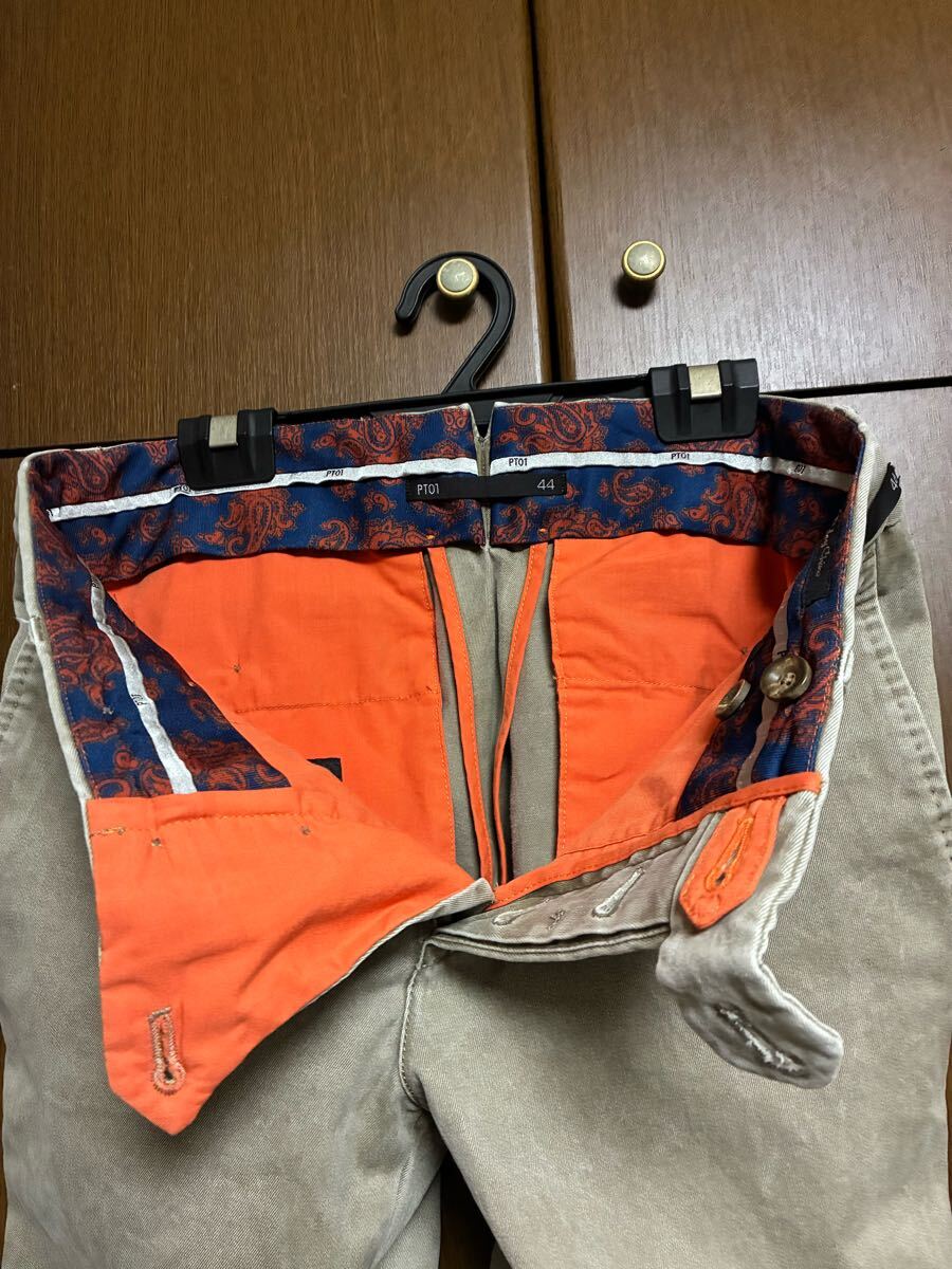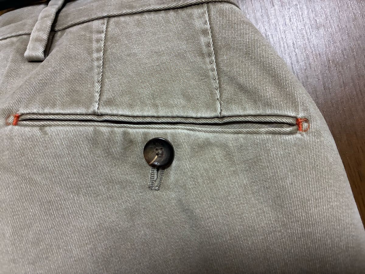 ボタンフライで、裏地がオシャレです。PTらしく、見えないオシャレですね。