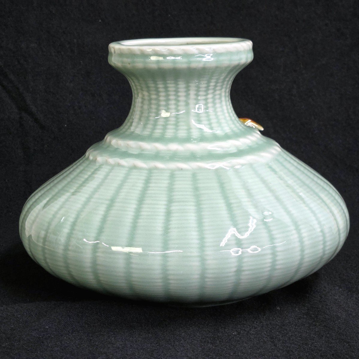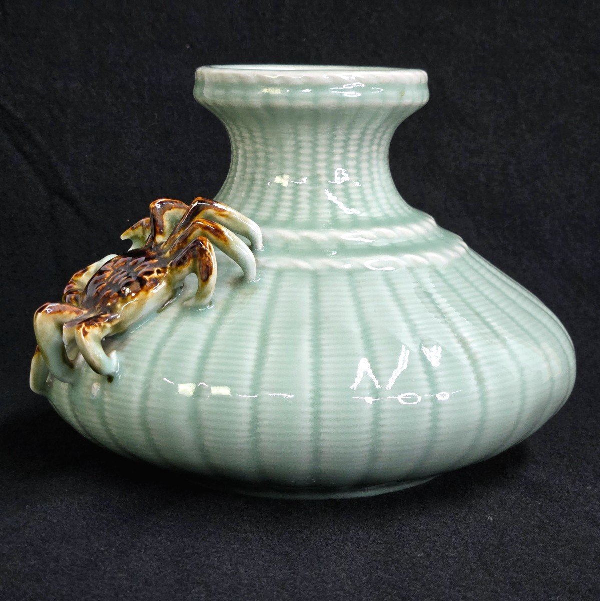 | ▼商品名 | [欠けあり] 青磁 壺 蟹 銘なし 詳細不明 花器 花生 花入 工芸品 レトロ 骨董 アンティーク |