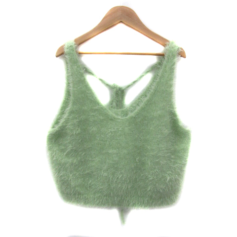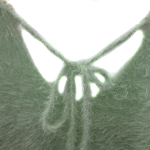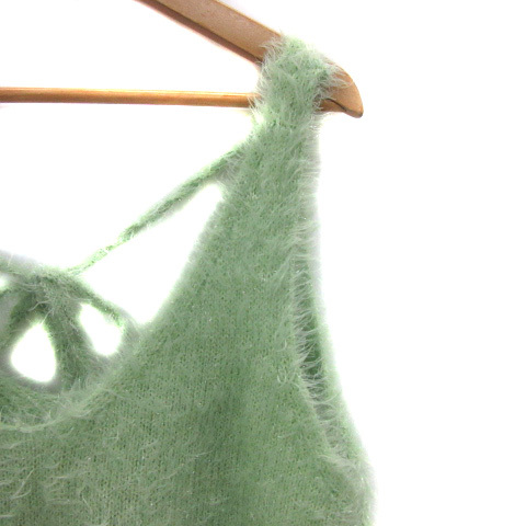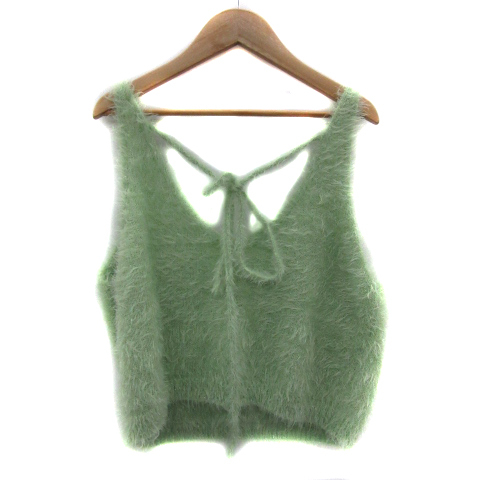 ディスコート Discoat シャギーニットキャミソール ショート丈 2way Vネック リボン F 黄緑 ライトグリーン /YS22 レディース
