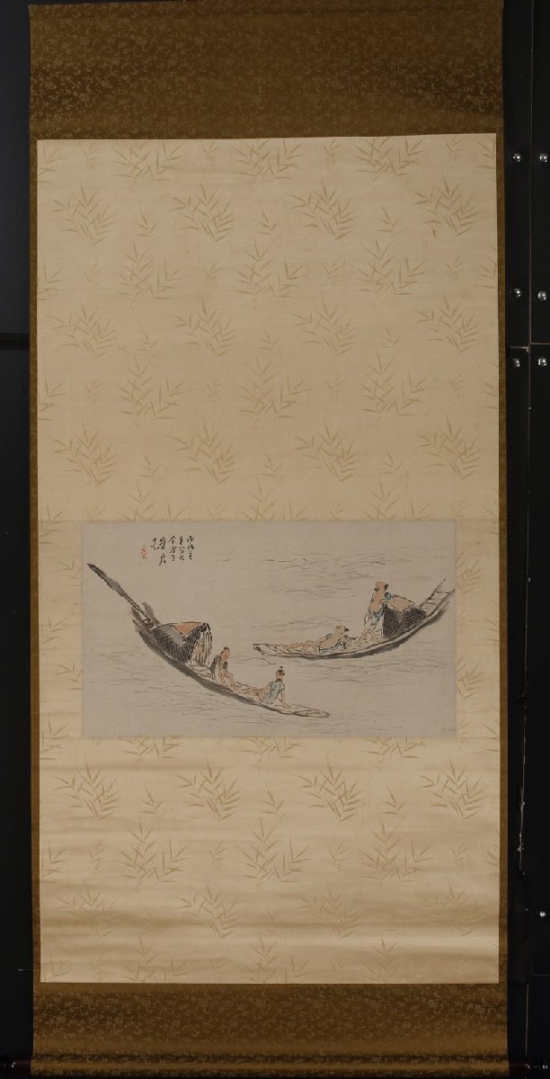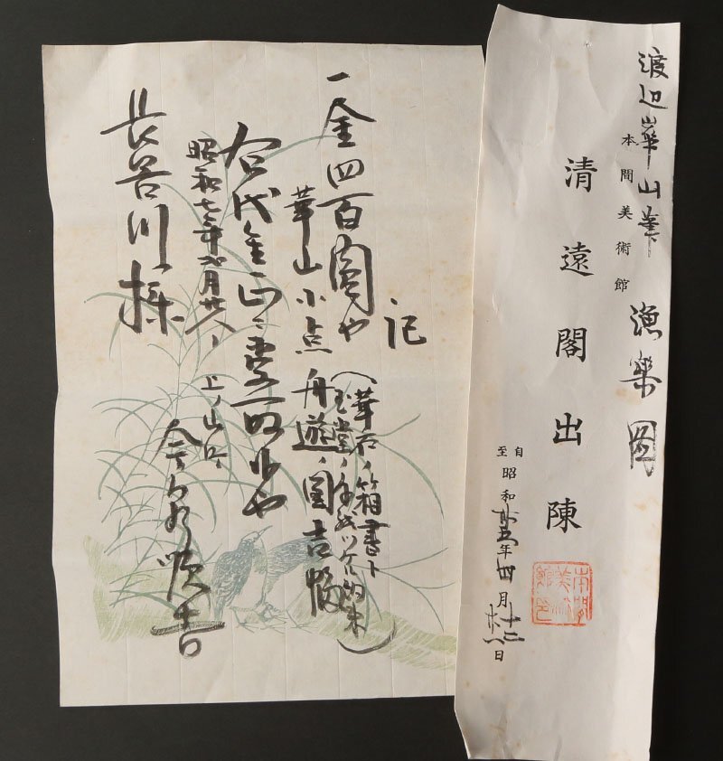 【模写】委託HK◇渡辺崋山 漁楽図横物 渡辺華石極 長谷川吉三郎旧蔵 本間美術館出陳札