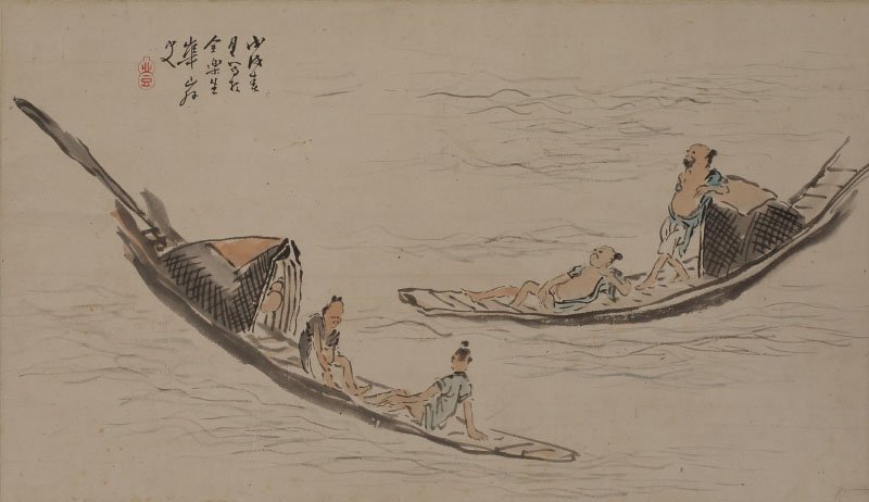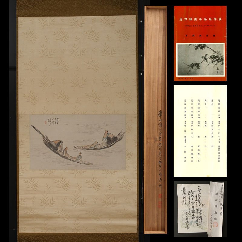 【模写】委託HK◇渡辺崋山 漁楽図横物 渡辺華石極 長谷川吉三郎旧蔵 本間美術館出陳札(近世日本画 文人画 水墨画 書家 三河田原藩 家老)