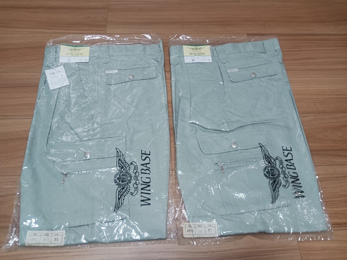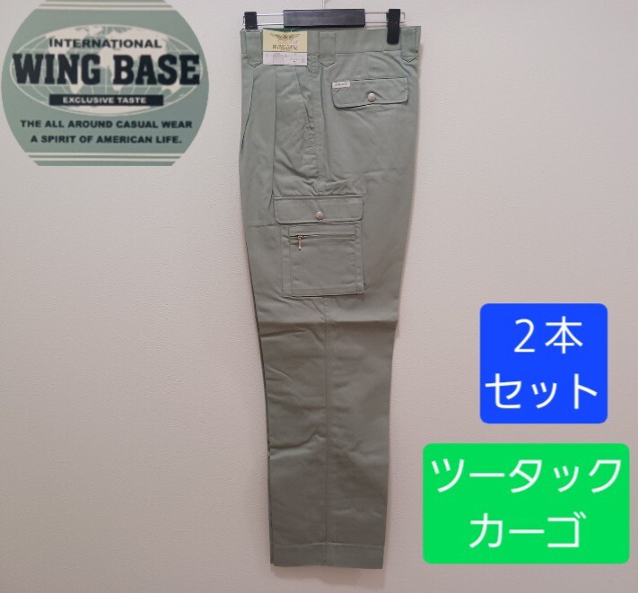 5403 WING BASE 4705|ツータックカーゴパンツ|グリーン系|W85㎝×2本|秋冬|新品未使用|綿ポリ混紡|作業ズボン|カーゴズボン|ミリタリー
