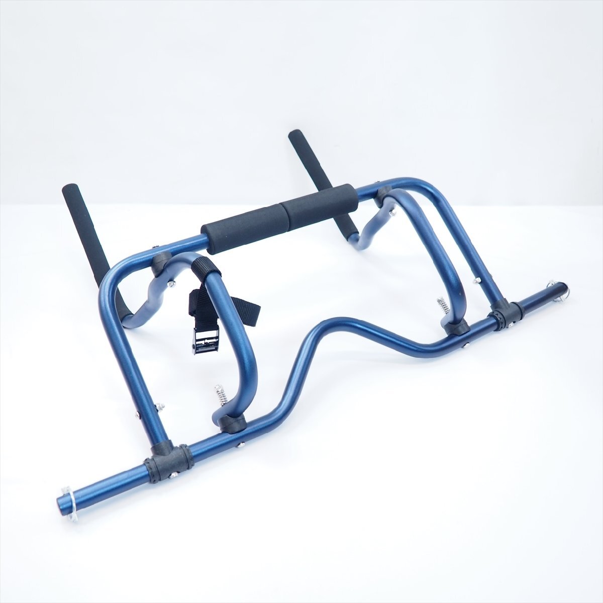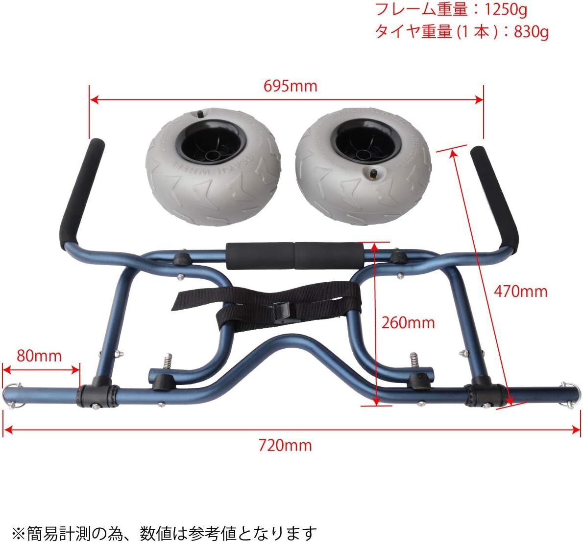 | カヤック/カヌーカート シットオンタイプ 詳細 ・シットオントップカヤックの搬送に特化したフレーム設計です。 ・幅の調整ができる角状の2本のバーを、シットオントップカヤックのセルフベイラー穴に差し込むだけでセット完了。 ・アルミフレームには青い防錆コーティングが施されています。 ・耐荷重:約45kg ※タイヤを別途準備してご活用下さい。 タイヤ軸径 20mm |