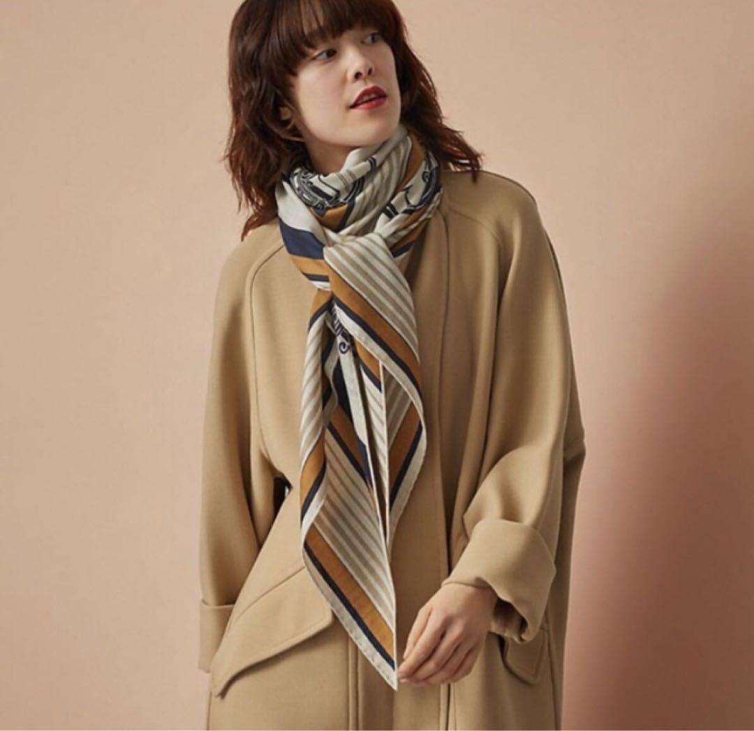 トップスへの合わせやすさも抜群で、くるっと首元に巻くだけでさまになります。