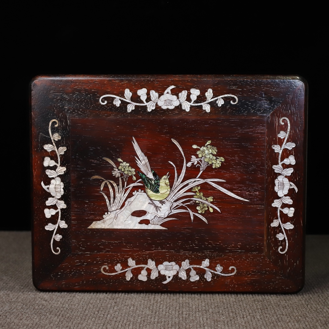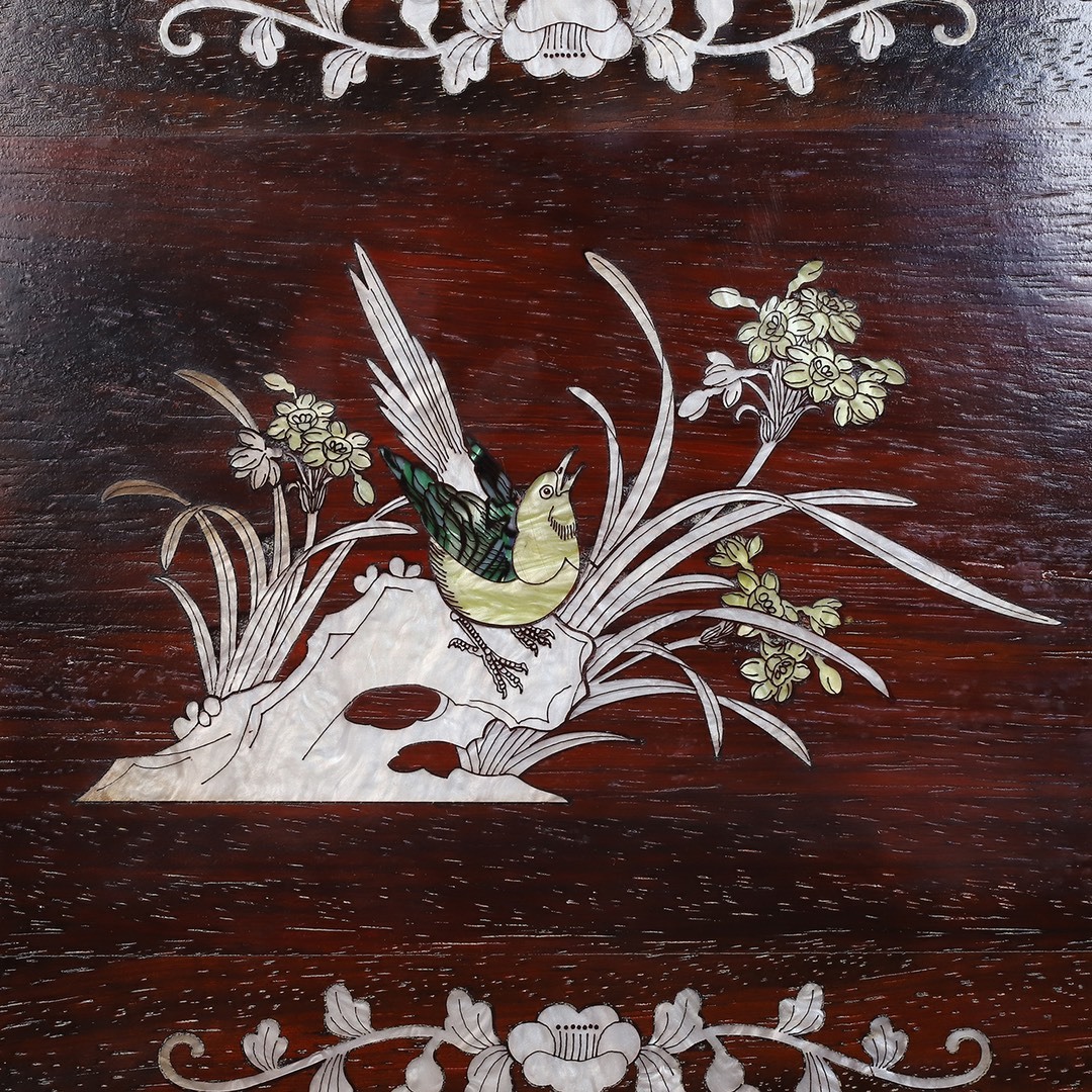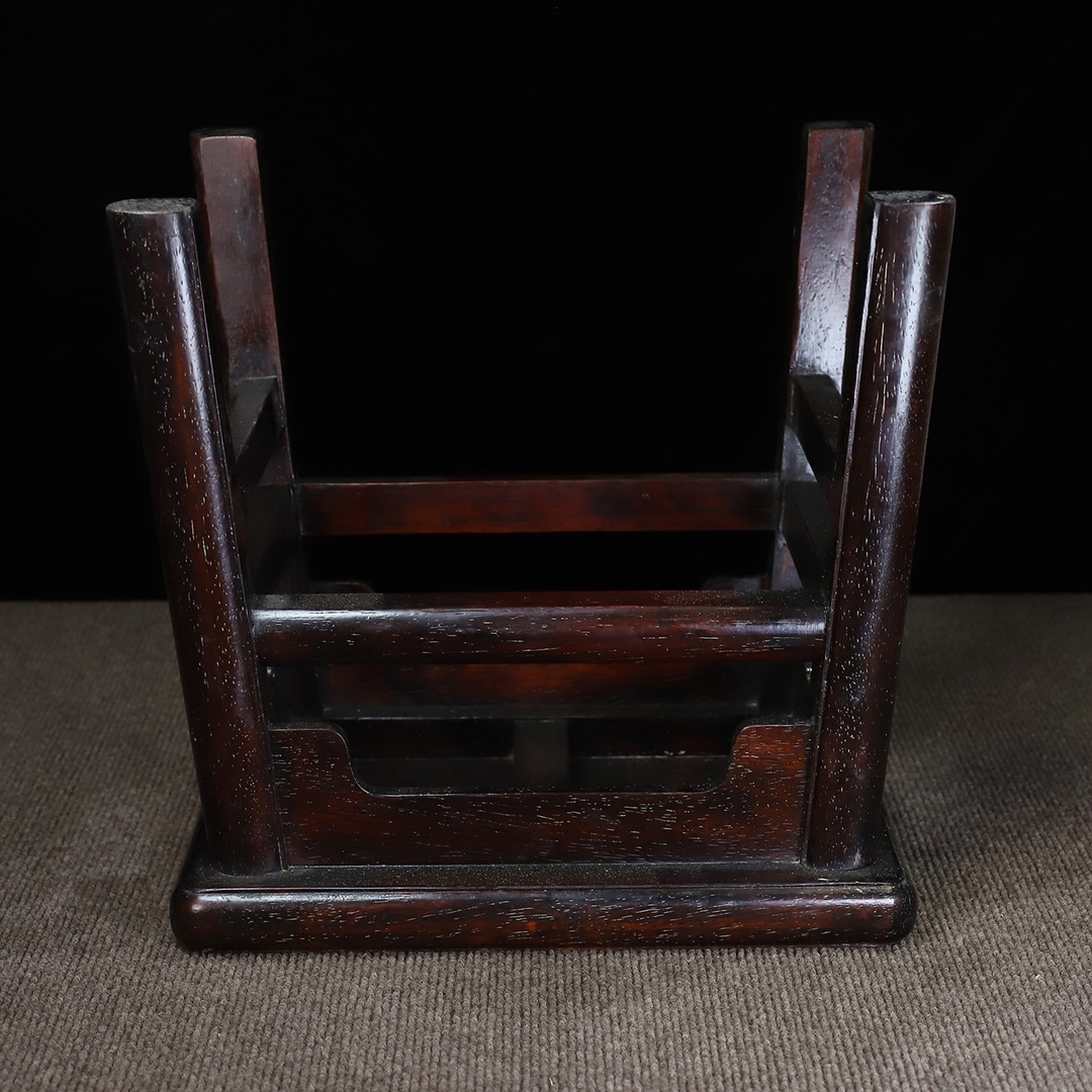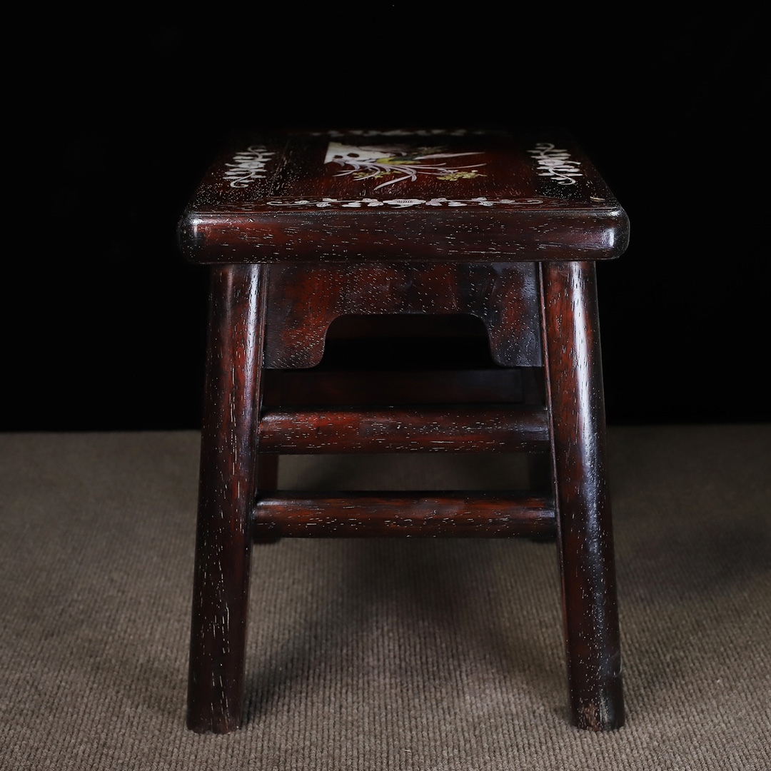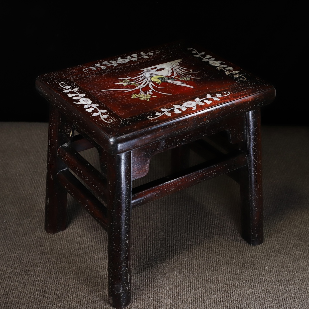 清時代 古紫檀木彫 嵌彩貝 花鳥紋 四方 富貴椅 椅子 擺件 家具 古玩家具 極細工 古賞物 古美味 東洋彫刻 時代物 骨董 中国古美術