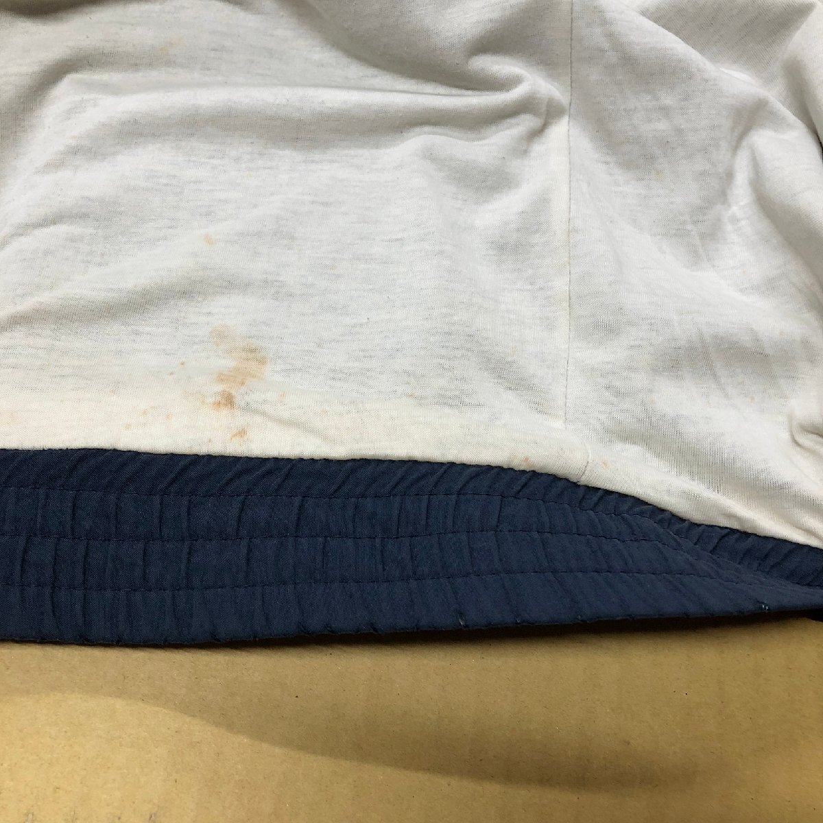 中古品です。使用感があります。腕や背面や裏地両脇や裾等に汚れや細かな毛玉があります。