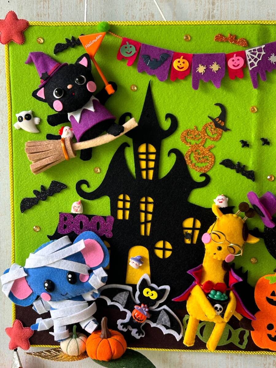 | ご覧いただき、ありがとうございます。 ハロウィンのイメージでタペストリー、壁飾り、置き飾りをつくってみました。 リビングや玄関などお気に入りの場所にかざっていただけると嬉しいです♪ サイズは縦約31cm、横約52cmです。(上部吊り紐、下部飾り房含まず。) 中央部分で折りたためます。(10枚目画像) こちらの品は置き飾りにもなります。(7,8、9,10枚目画像) 軽くくの字に折っていただくと自立します♪ 材料は、フェルト、プラスチックボード、デコパーツ、その他です。 チクチクと手縫いとグルーガン、ボンドで接着してつくりました。 ★月曜日は梱包の為、発送は火曜日以降になりますのでご了承ください。 また土曜、日曜、祝日は郵便局がお休みのため、発送できません。よろしくお願いいたします。 最初のご連絡は落札日、またはその翌日までにいただけると大変たすかります。 落札日より、3日間経過してもご連絡がない場合は、 「落札者の都合」でキャンセルさせて頂く場合がございますのでご了承ください。 素人の手作りですので、ご理解の上、ノークレーム、ノーリターン、ノーキャンセル、でお願いいたします。m(__)m | |||