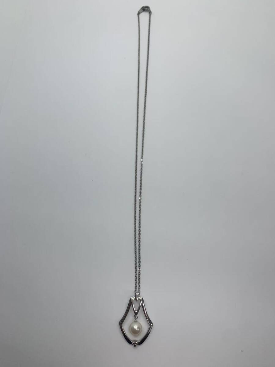 首周り約44cm、真珠直径約7mm、ペンダントのサイズ約:26x18x2mm。