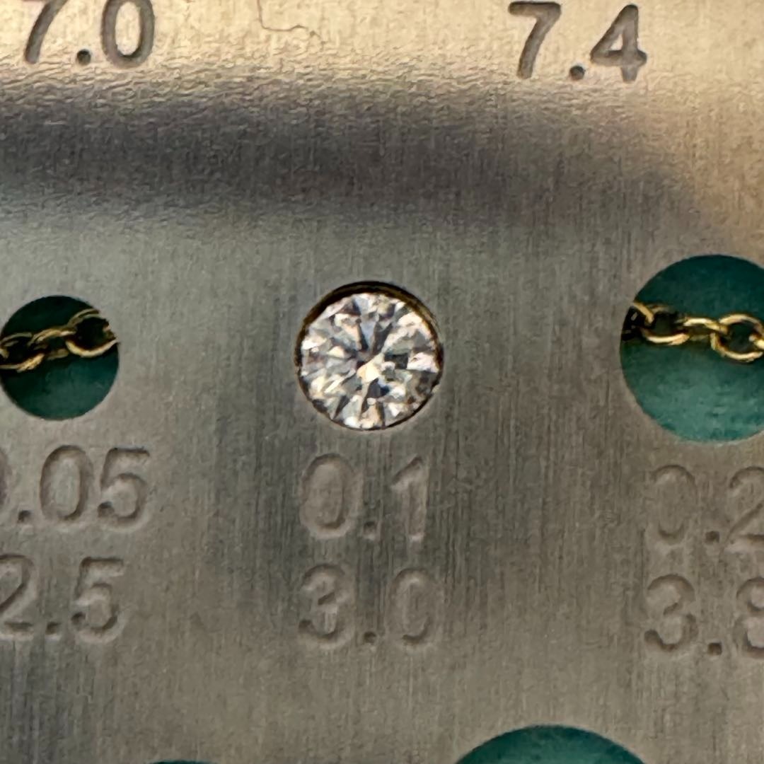 (ダイヤ直径3mm、ダイヤモンドゲージから0.1ctと推測します。ほぼ近似値で間違いないかと。)