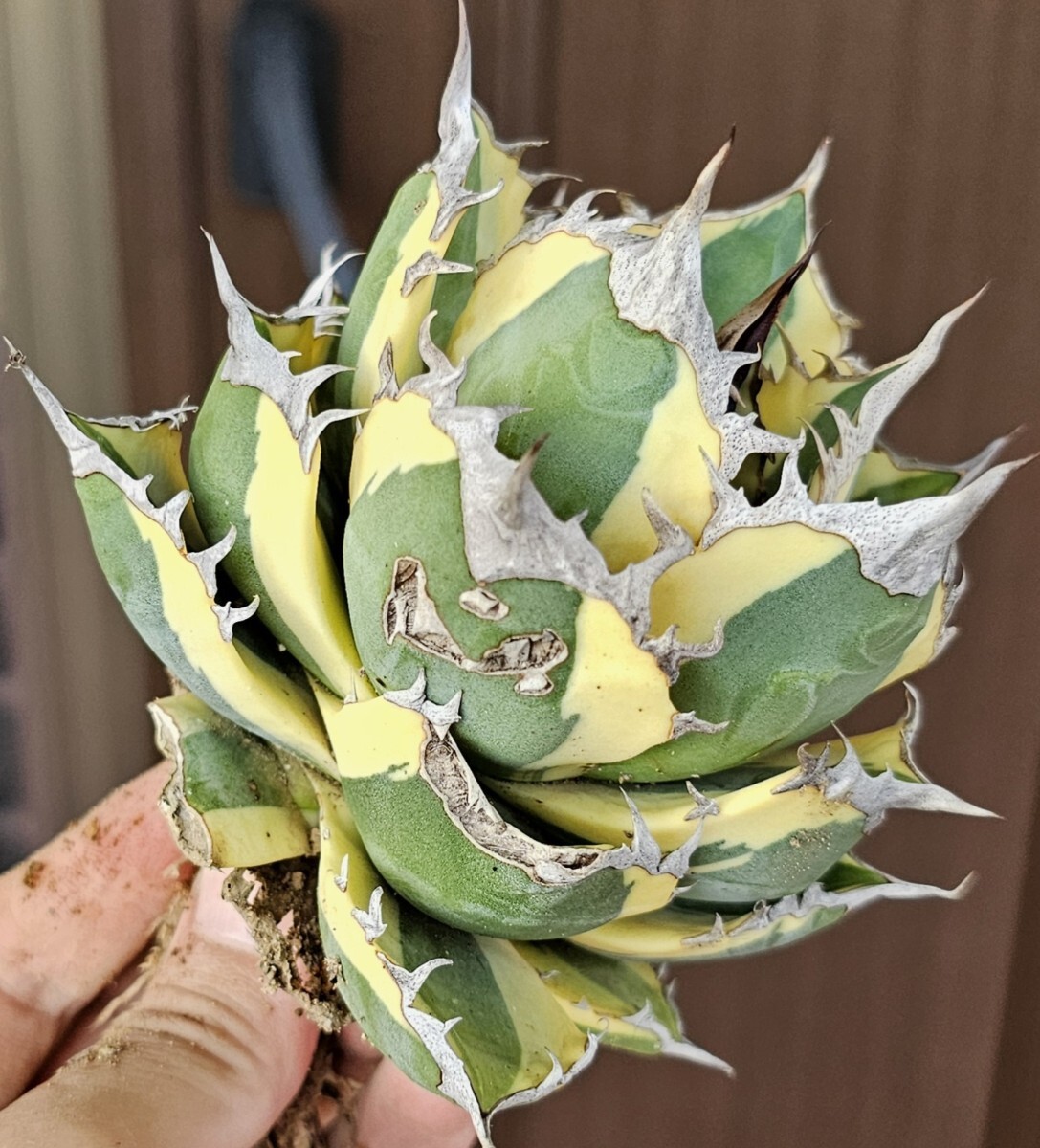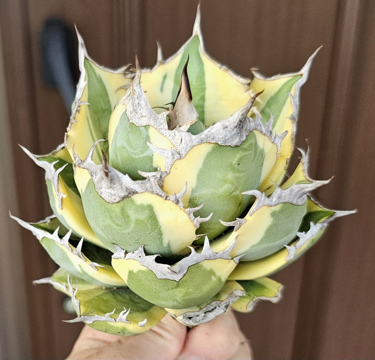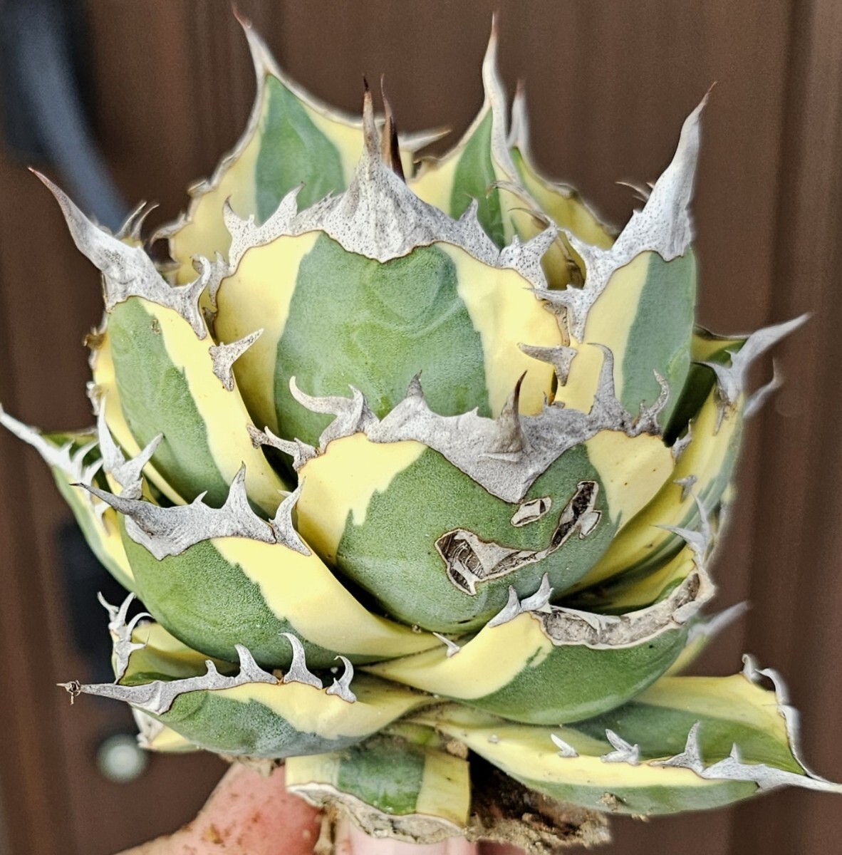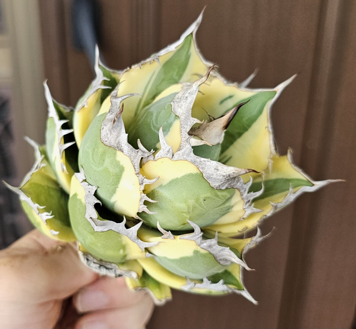 小といっても充分大きいです。胴切り株ではありません。ボール状にまとまり、刺も強烈です。色も鮮やかです。私の育成株。直径約10cm。美しく、かっこいいです。屋内外で管理しており、汚れや多少の刺の折れはご理解下さい。