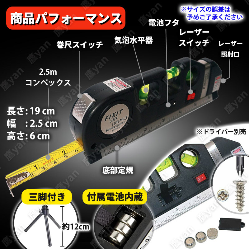 | 水平器 レーザーレベル 測定 赤外線 巻尺 定規 コンパクト ミニ 墨出し 三脚 |