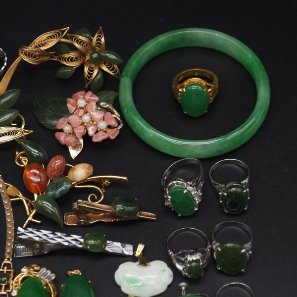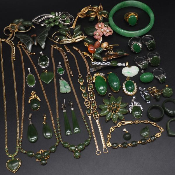 (JD0905) 1円 翡翠 ヒスイ アクセサリー 大量セット ネックレス ブレスレット ペンダントトップピアス ブローチ 指輪 等 まとめて