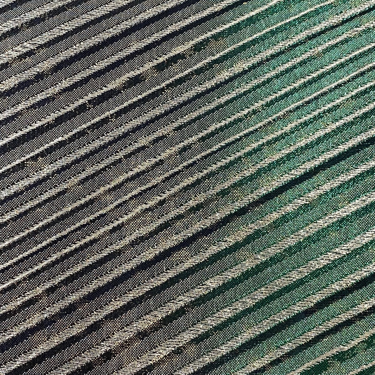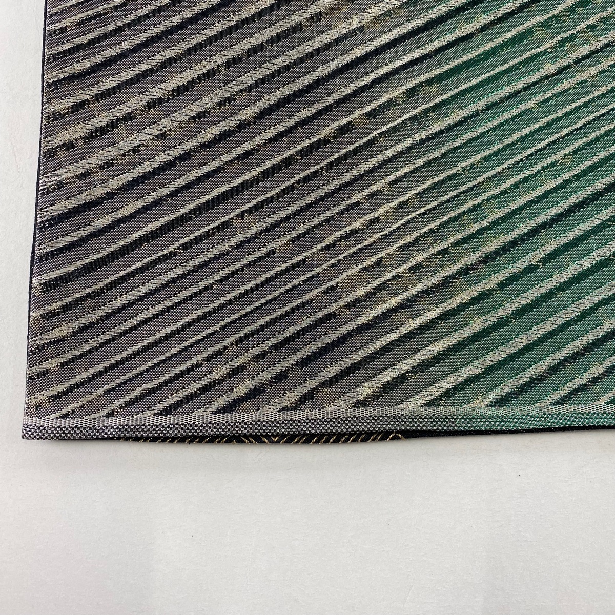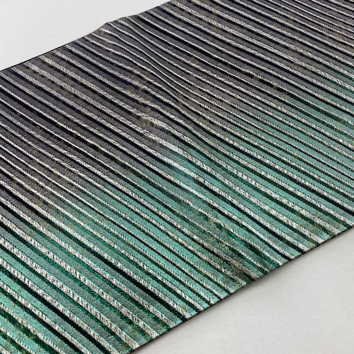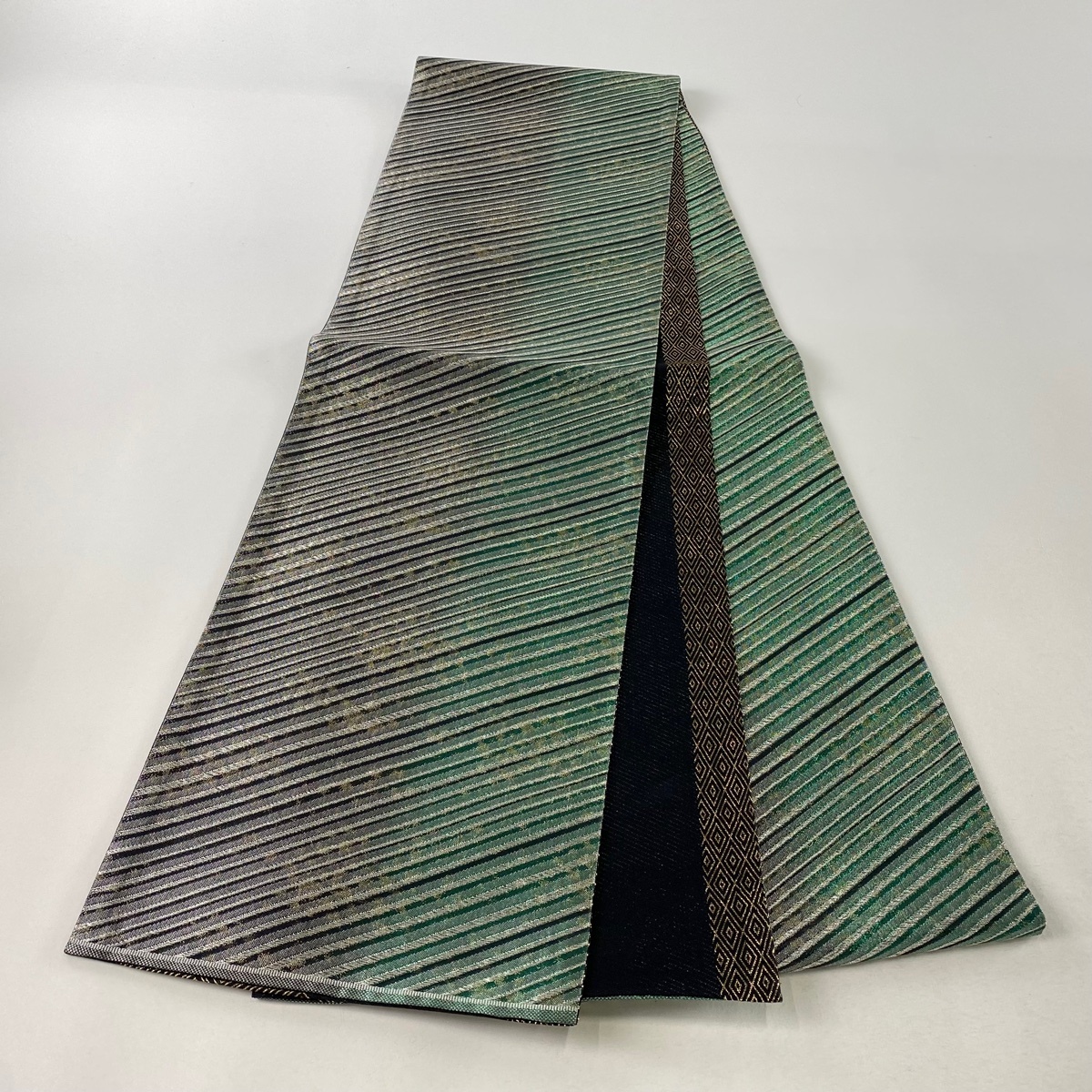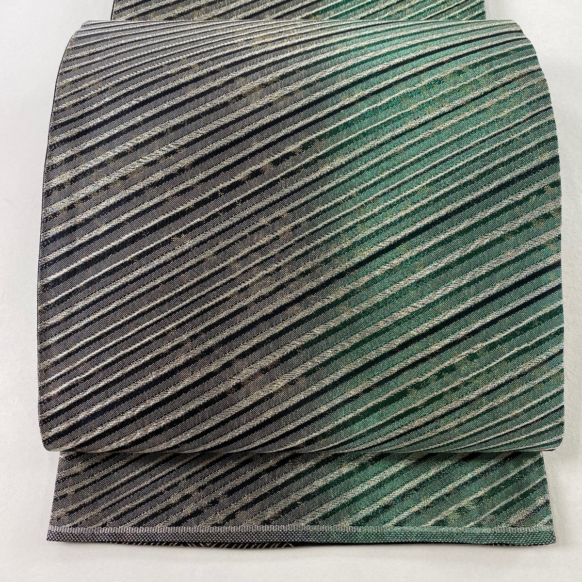 | 袋帯 秀品 斜縞 銀糸 箔 緑 全通 正絹 【中古】 |
