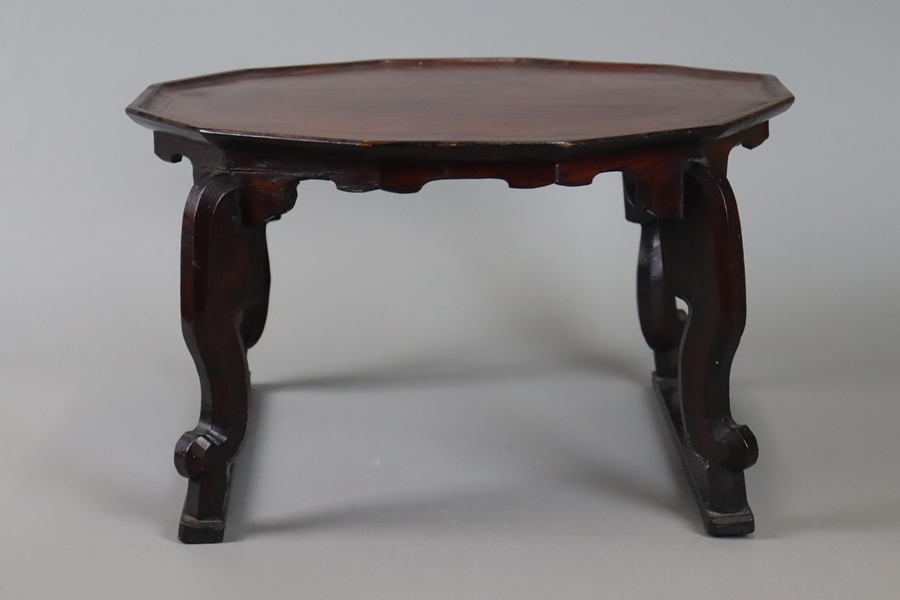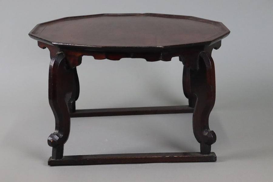 朝鮮美術 李朝時代 木造 李朝膳 十二角膳 幅42cm 四足膳 羅州盤 小盤 ソバン 座卓 文机 花台・バンダジ 細密細工 古美[d1012]