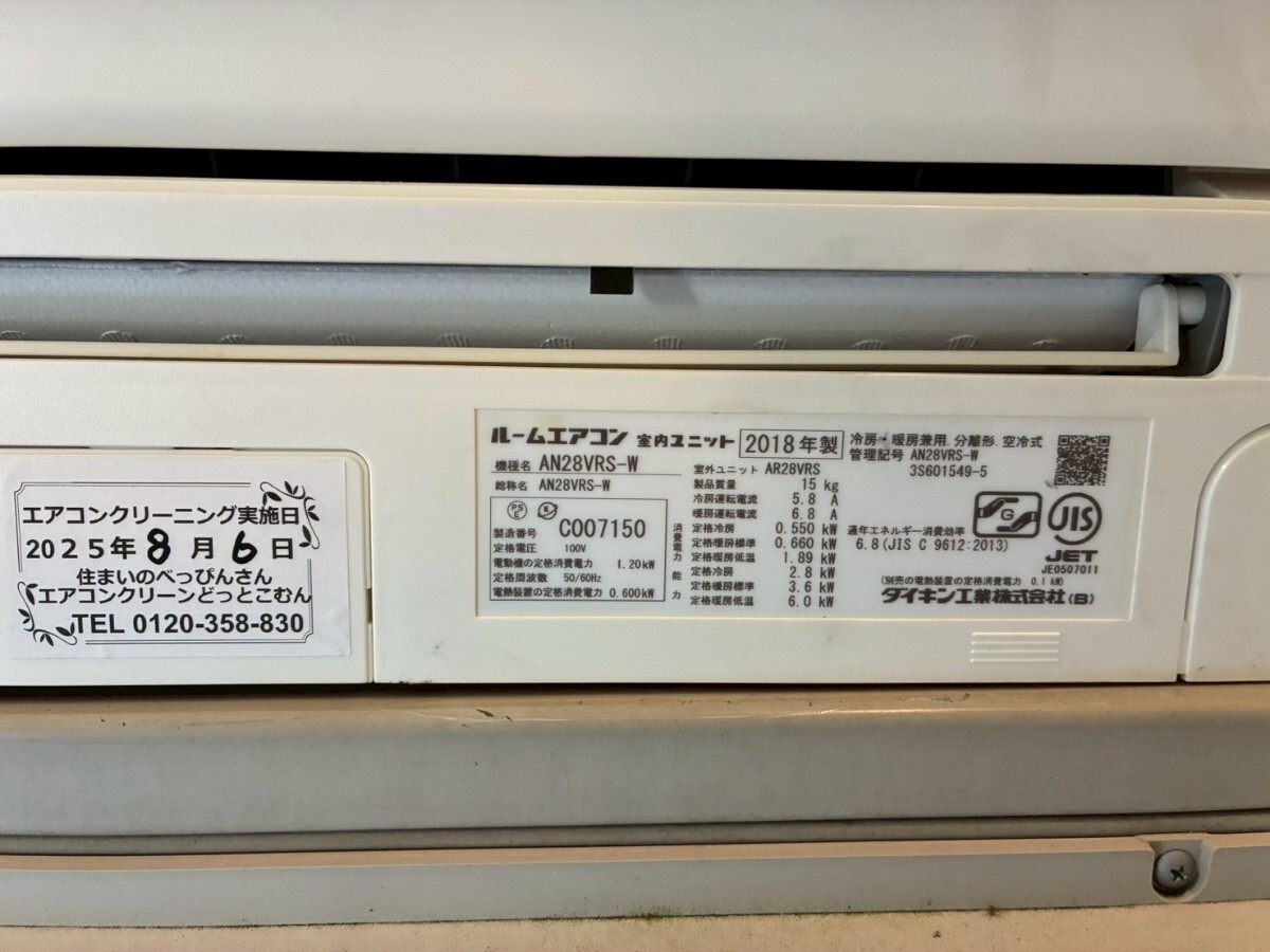 ※室内機は分解洗浄を行っておりますが取りきれない汚れや臭い等がある場合があります。