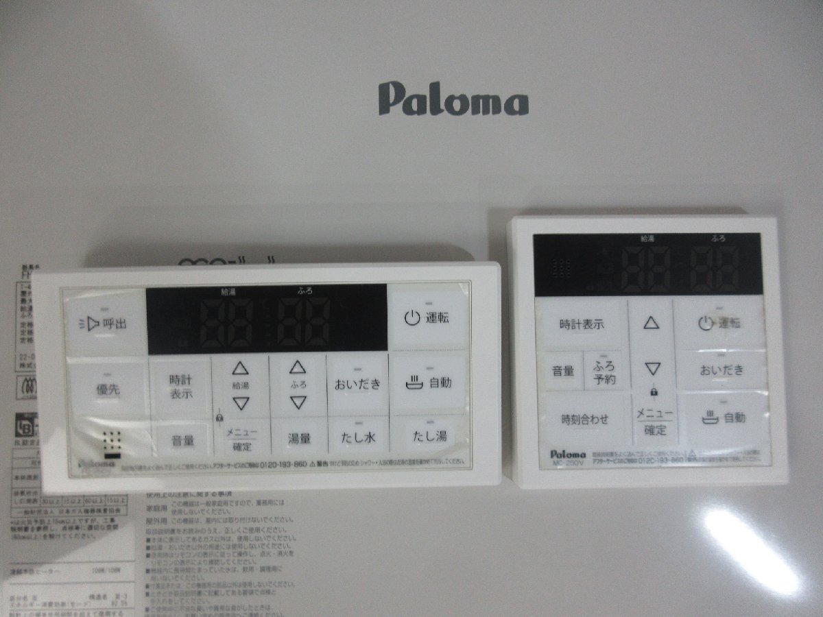 中古美品 22年製 リモコン付 パロマ エコジョーズ プロパンガス LPG LPガス オート 追い焚き 24号 屋外壁掛 FH-EZ2426SAWL-IG(10) [9612]