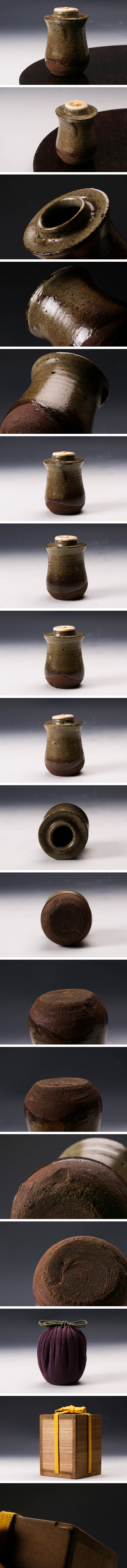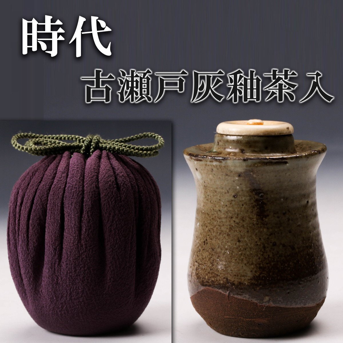 【佳香】時代 古瀬戸灰釉茶入 仕立箱 仕覆 茶道具